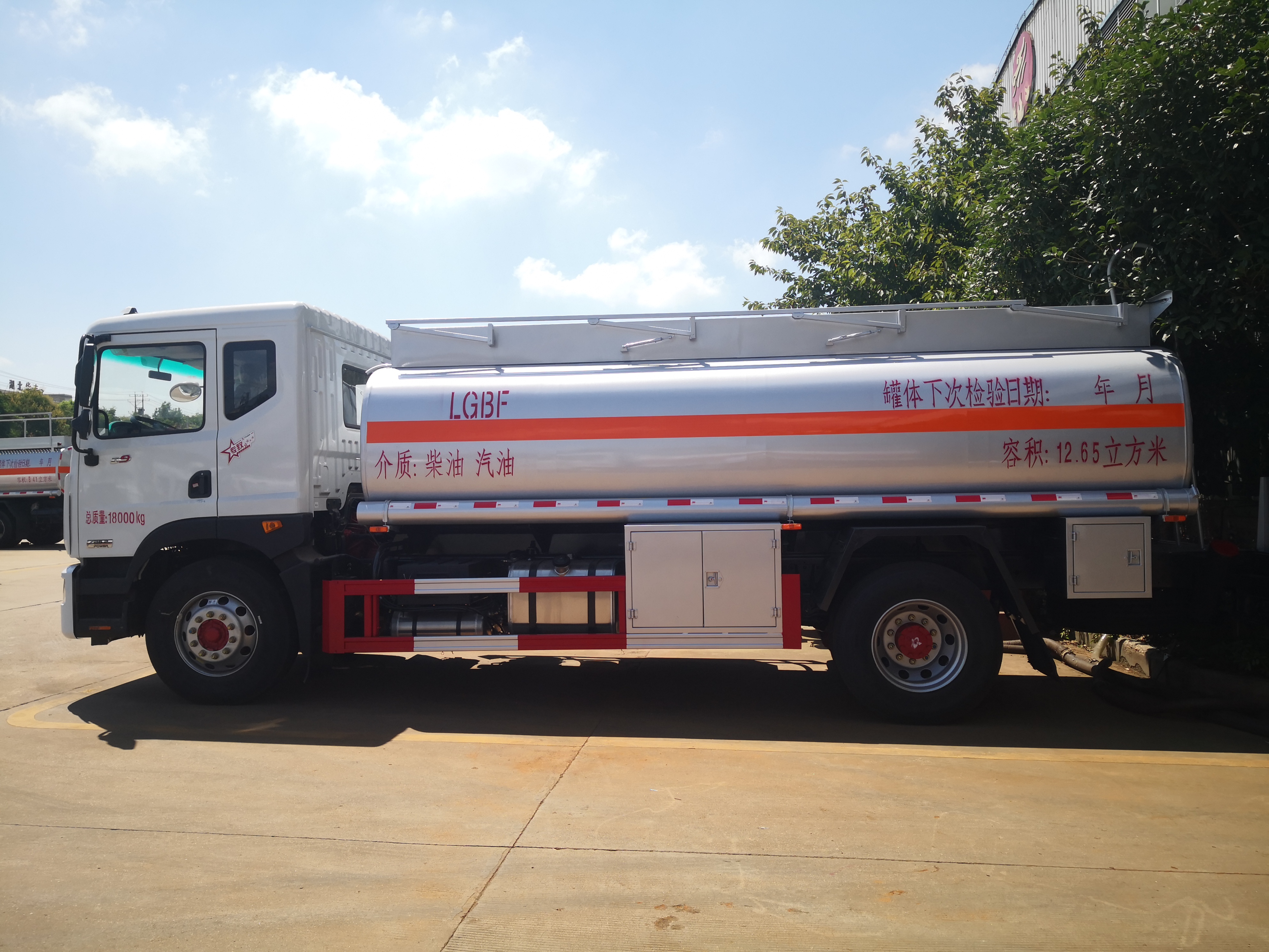 /EBS/ESC/AEBS/單錠行駛記錄儀罐體容積12.65m3,罐體采用Q235B優(yōu)質(zhì)碳鋼板制作。3、一個(gè)鋁合金歐式罐口,一個(gè)鋁合金海底閥(帶海底閥新規(guī)), 80-60泵(右側(cè)3寸出口),一套油氣回收裝置,一套防溢漏報(bào)警裝置,一個(gè)下裝口(裝右側(cè)),15米自動(dòng)回位卷盤,長(zhǎng)穩(wěn)大流量加油機(jī),一個(gè)靜電線盤,罐頂升降護(hù)欄,一個(gè)工具箱,一個(gè)防火帽,帶堵蓋。4、油漆:金屬銀灰漆,貼反光線條及3號(hào)危險(xiǎn)品標(biāo)。