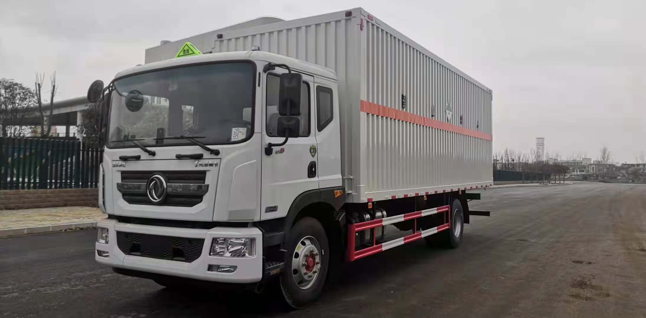 東風(fēng)多利卡D9國六瓦楞廂式運(yùn)輸車采用沖壓成瓦楞板,以公告為準(zhǔn)。內(nèi)加強(qiáng)“幾”字型加強(qiáng)梁,車體底板加強(qiáng)處理并做防靜電處理。車體的左側(cè)、右側(cè),和后欄板栓鉤結(jié)構(gòu),可向下打開,方便上下貨物,車體為空曠式車型,大大減少了運(yùn)輸物品因?yàn)楠M窄空和強(qiáng)烈碰撞產(chǎn)生氣瓶爆炸的危險(xiǎn)性,箱體外觀涂裝白色油漆,在欄板的中間位置粘貼橙色的;嚇(biāo)帶,并在車體的左、右、后部粘貼“易燃?xì)怏w”或“不燃?xì)怏w”標(biāo)識(shí)。駕駛室內(nèi)部配備兩只滅火器,后杠處安裝防追尾事故的緩沖固定塊。此款車輛屬于國家規(guī)定的危險(xiǎn)品二類危險(xiǎn)品運(yùn)輸車。