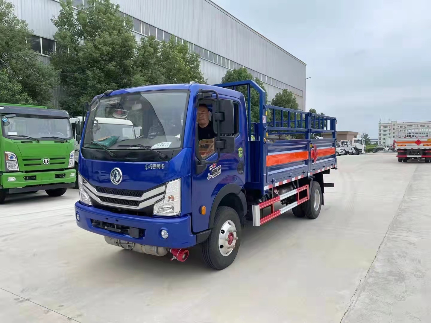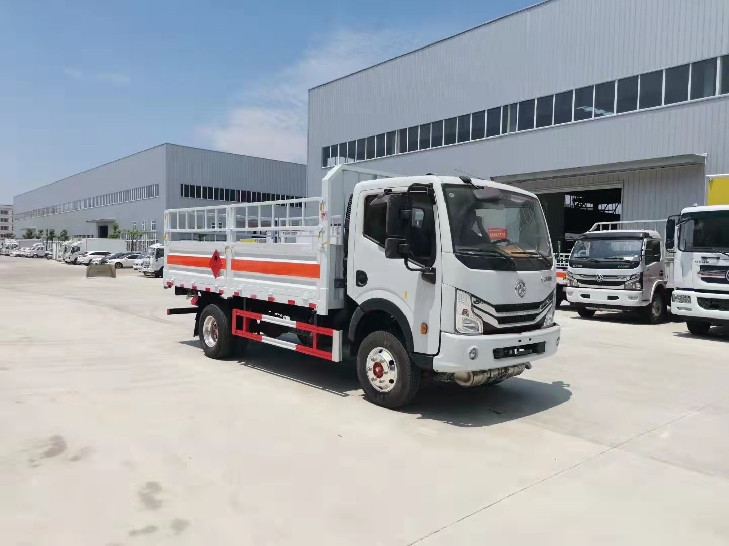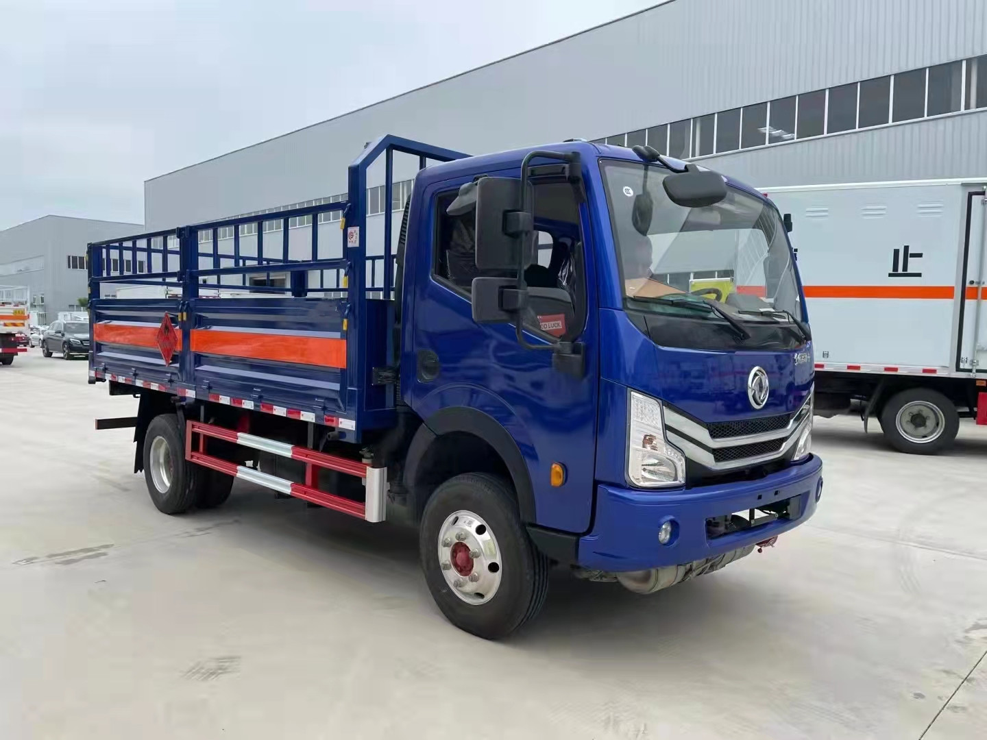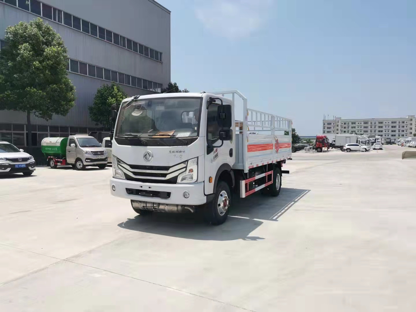 東風多利卡國六4米2氣瓶運輸車廂式欄板車結構,外厚度為1.1毫米厚度武鋼冷軋鋼板(或沖壓成瓦楞板,以公告為準),內加強“幾”字型加強梁,車體底板加強處理并做防靜電處理。車體的左側、右側,和后欄板栓鉤結構,可向下打開,方便上下貨物,車體為空曠式車型,大大減少了運輸物品因為狹窄空和強烈碰撞產生氣瓶爆炸的危險性,箱體外觀涂裝白色油漆,在欄板的中間位置粘貼橙色的;嚇藥,并在車體的左、右、后部粘貼“易燃氣體”或“不燃氣體”標識。駕駛室內部配備兩只滅火器,后杠處安裝防追尾事故的緩沖固定塊。此款車輛屬于國家規定的危險品二類危險品運輸車。