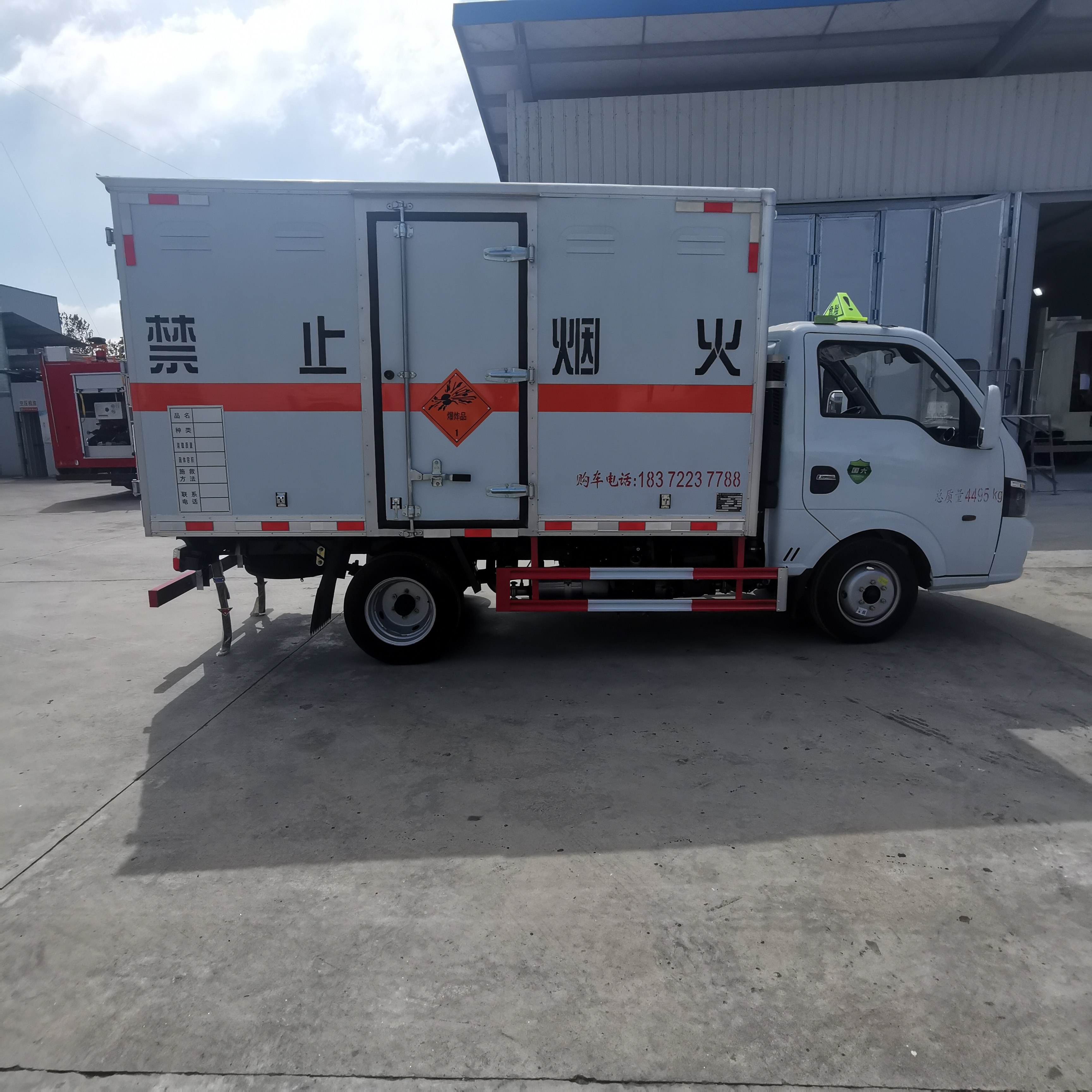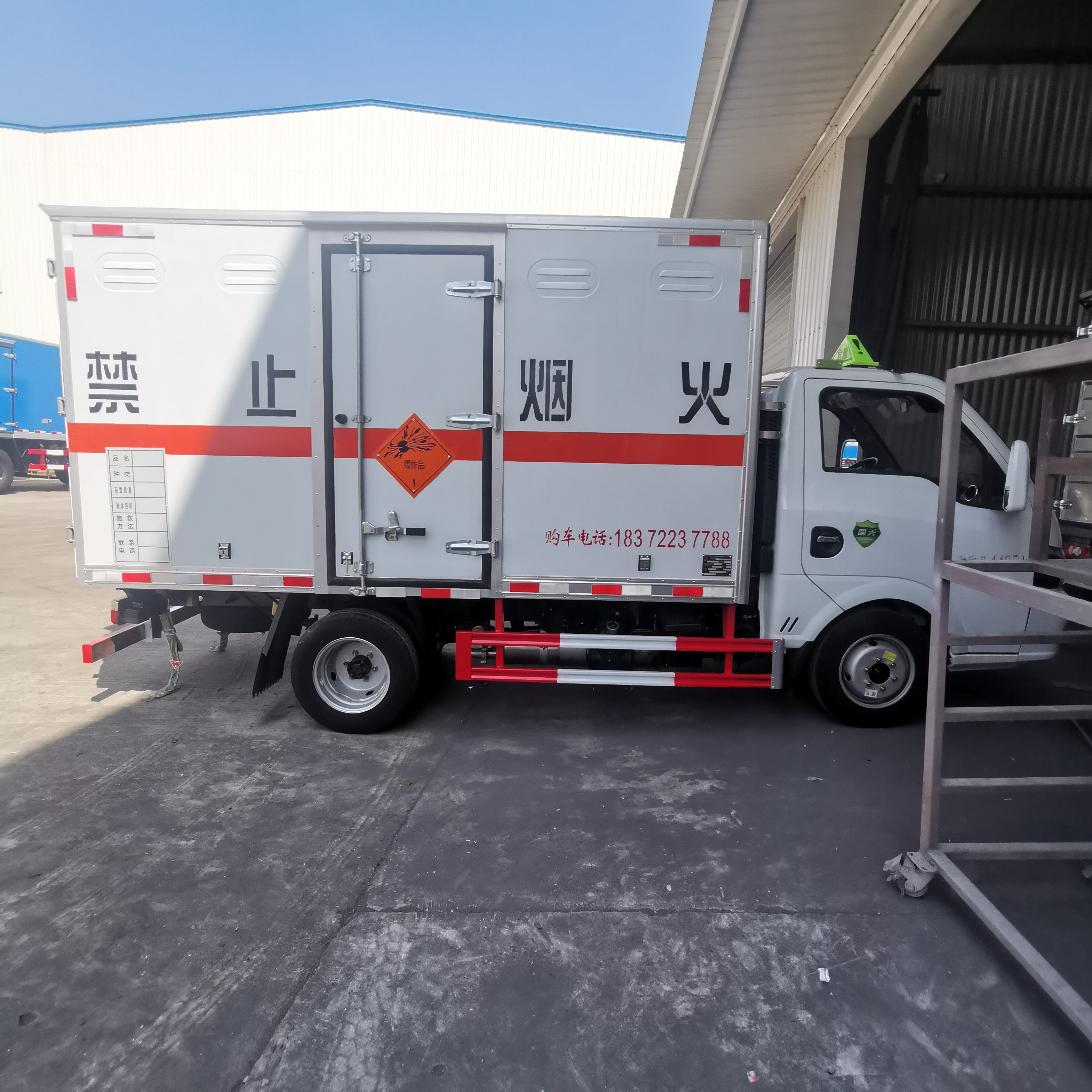 東風途逸國六帶中開側門柴油民爆車嚴格按照公告尺寸制作,外板采用1mm厚冷軋板有一次性成型的百葉窗,內飾為導電性能良好的鋁板有透氣孔,內襯為矩形管骨架牢靠穩定,內部填充為透氣防潮阻燃的擠塑板,四種材料經現代工藝復合而成,廂體外部上下鋁合金型材包邊,底板和車廂前下部鋪橡膠皮,后門雙開,右側中部單開門,霧報警器和門防盜報警器,嚴格按照國家危險品相關法規張貼。