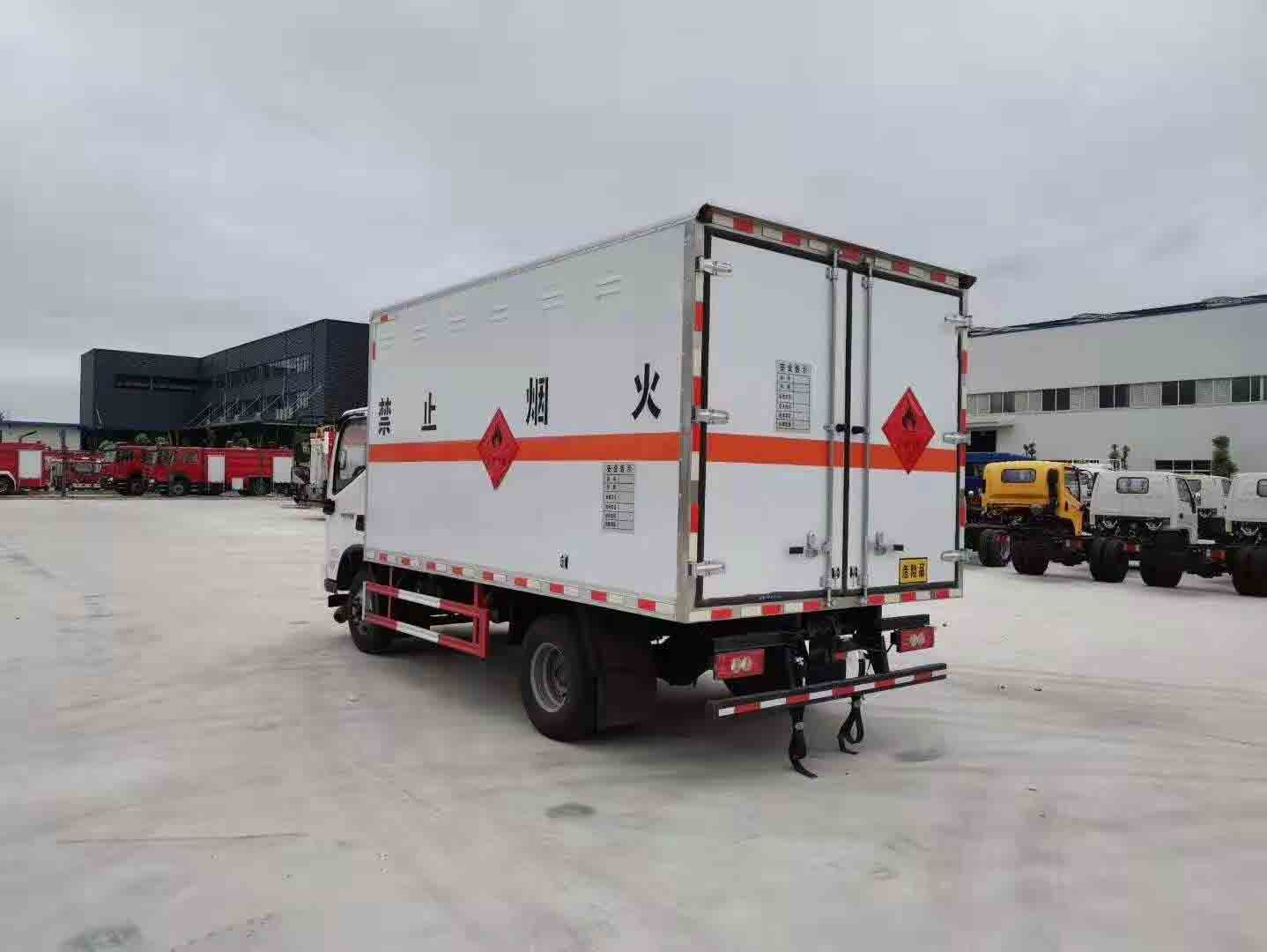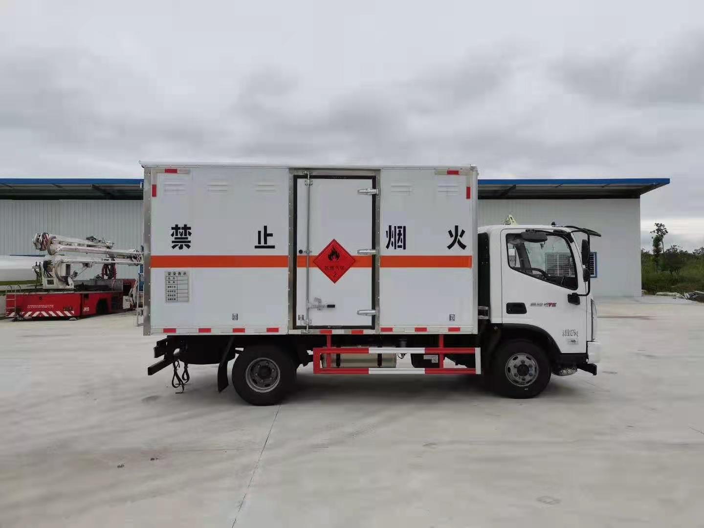 福田奧鈴4米7國六排半危險品車廂體尺寸:4700x2200x1800mm,整車尺寸:6995x2350x2920mm,右側(cè)中開單門,廂體生產(chǎn)工藝采用可產(chǎn)生靜電屏蔽效應(yīng)的冷扎鋼板,中間為B1級阻燃泡沫,內(nèi)飾鋁板。底板上鋪防靜電膠皮。廂內(nèi)兩側(cè)加裝固定貨物臥環(huán),后部帶防盜報警器,頂部帶煙霧報警器,其他按爆破器材運輸車標準制造。