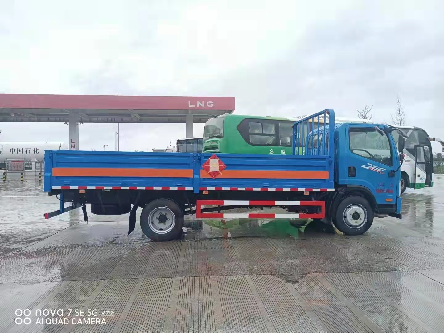 J6F解放5米1整車藍色國六氣瓶車采用可拆卸式花欄,外墻板采用1.2mm厚冷軋板,內襯邊框為矩形管骨架牢固穩定。底板為3mm厚花紋板并鋪設防靜電膠片。墻板高500mm,可根據客戶需求選擇低欄和液壓尾板。車身采用雙組份丙烯酸油漆,固含量高,漆膜硬度可達到2H,高硬度高彈性戶外7-8年的保光保色期限,耐候性強耐磨耐腐蝕抗氧化。廂體底盤采用無廢料拼接,密封性更好。可有效防止運載物滲漏。同時無底料拼接可以使貨物受力更均勻,不易變形,經久耐用。廂體底部與廂體前部鋪設有防阻燃導靜電膠板,與底盤等電位連接,可防止靜電火花產生和車輛靜電及時釋放,提高整車的安全性能。底盤大梁與橫梁采用槽鋼連接。擁有相對更好的韌性,重壓之后保持不易變形,具有良好的承載能力。