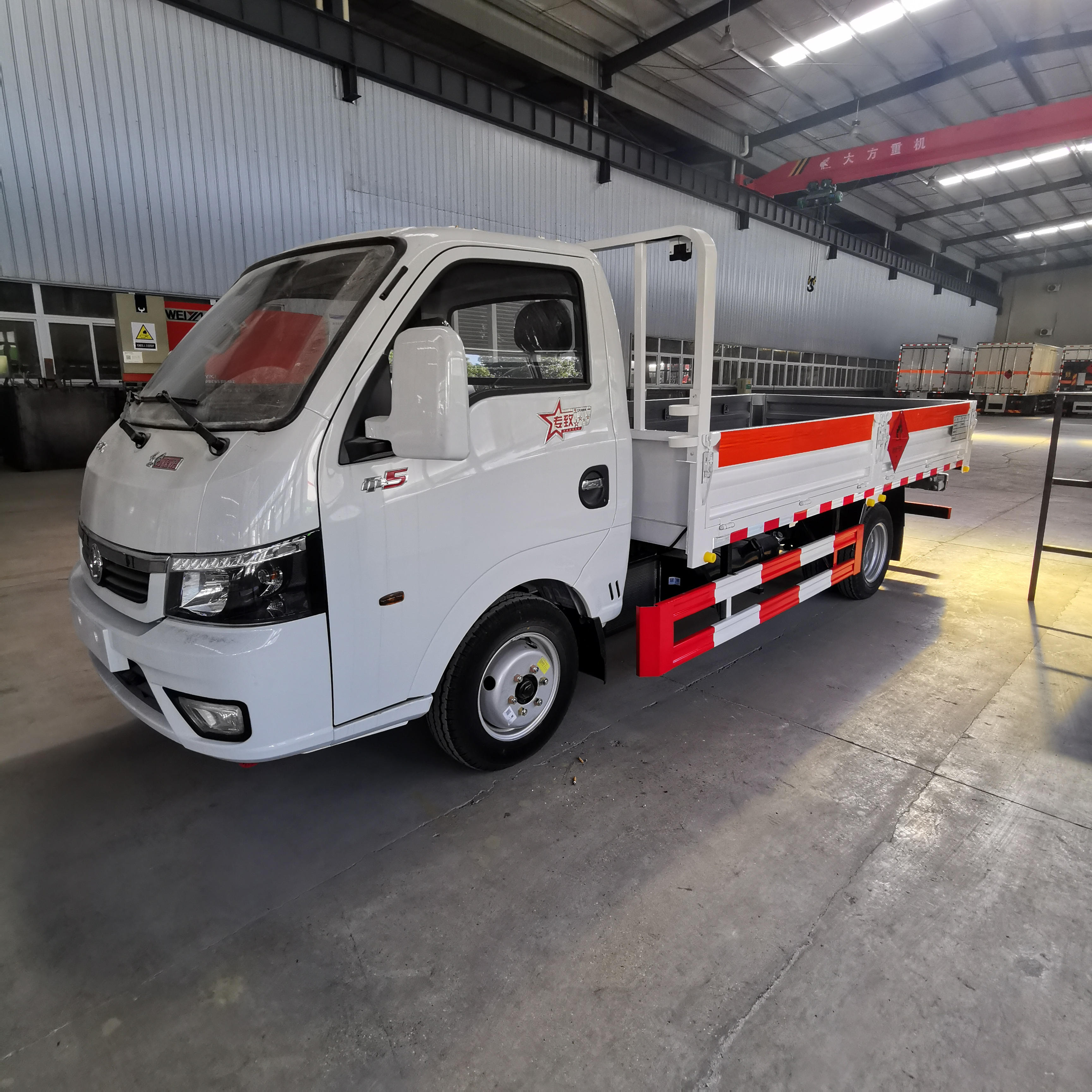 東風途逸柴油3.85米低欄板氣瓶車采用的是東風途逸危險品車專用底盤,是目前小型柴油氣瓶車中非常暢銷的車型,該車選用的是3200mm軸距,客戶不用擔心后輪距太長承載能力不強的問題。為了讓客戶使用更舒適,該車配置有中控鎖、電動門窗、藍牙連接,重點是小型車輛配置有日間行車燈。行駛在路上更醒目,一眼就能辨認。