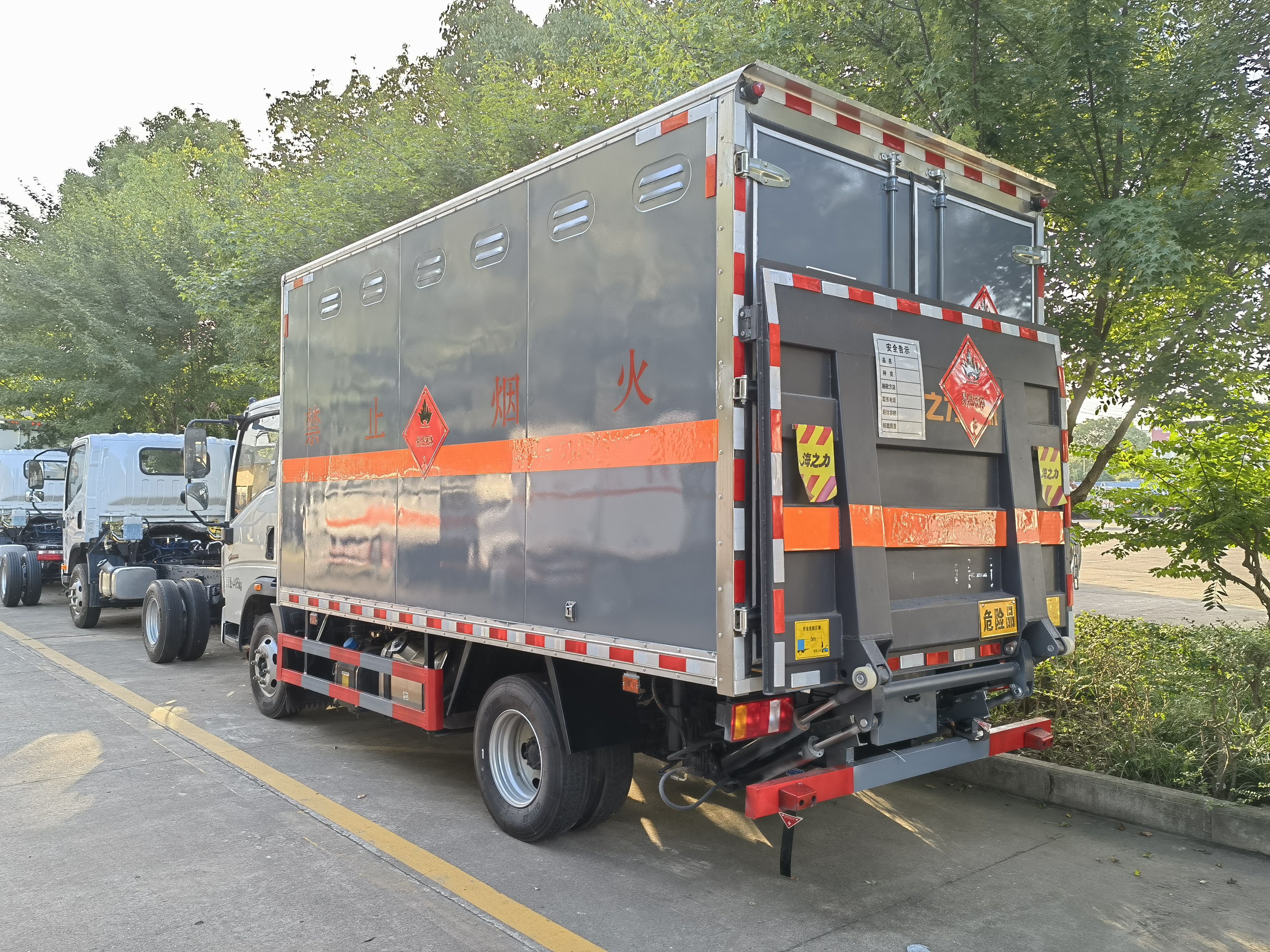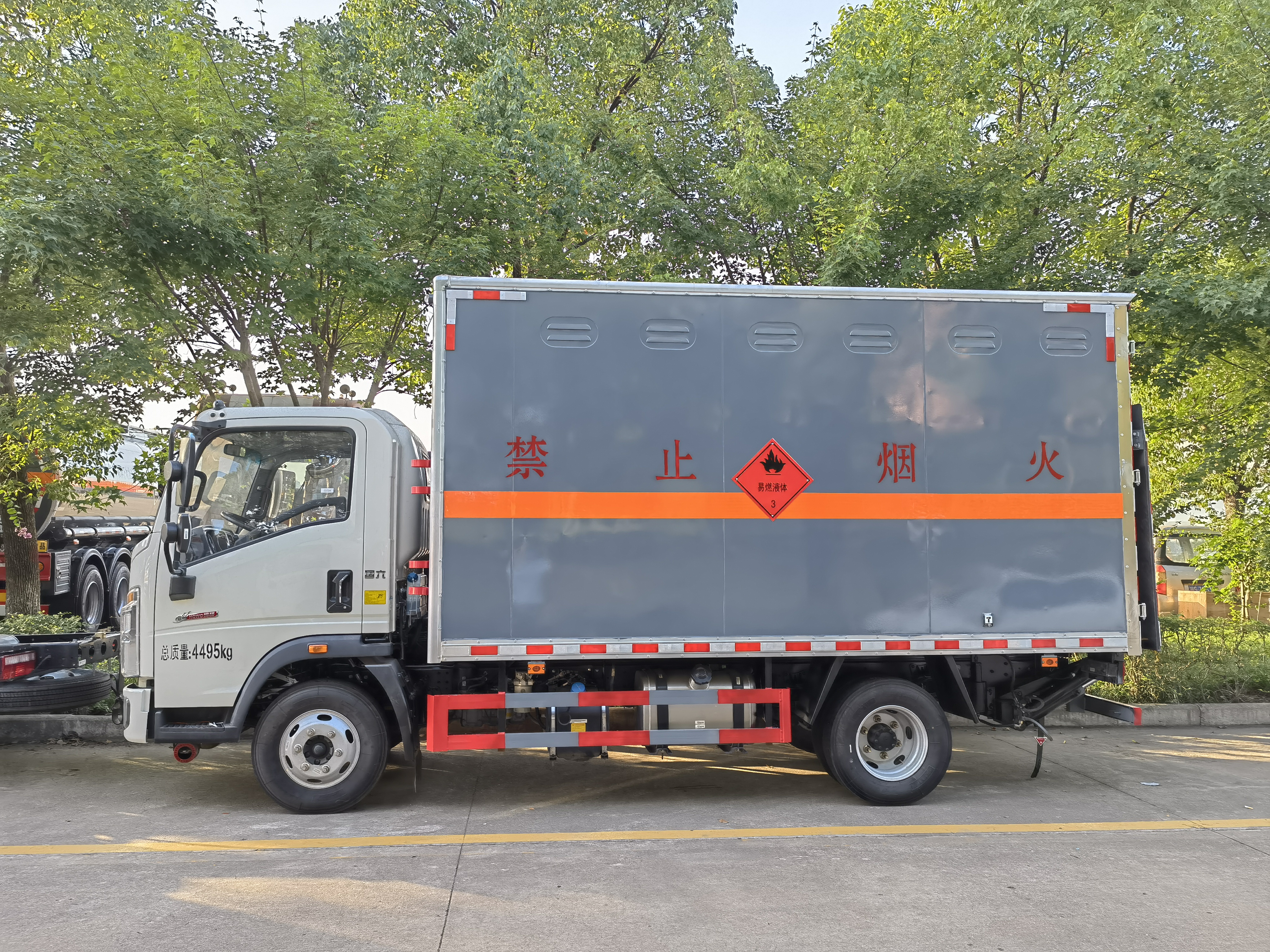 重汽豪沃雜項國六液化氣瓶運輸車貨箱配置:邊板瓦楞板,帶柵欄(可選裝低欄),底板為花紋板,鋪靜電膠皮,隨車配有靜電帶,滅火器,危險品三角頂燈。整車國標反光標示及警告標志。尾部可選裝液壓升降尾板,卸貨方便。氣瓶運輸車不僅可以用倉欄式,還可以選廂式易燃氣體運輸車。