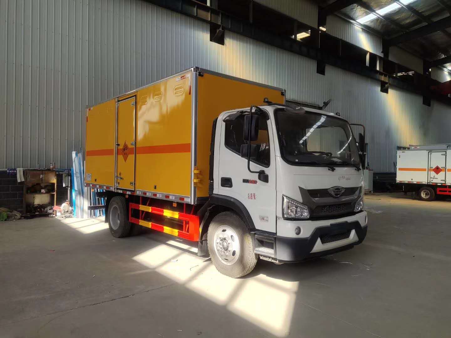 福田時代5米1爆破器材運輸車是福田系列少有的危險品純工程底盤,濰柴190馬力,性價比高產品。福田時代5.2米危險品廂式車,8噸重載型后橋,濰柴190同級別大馬力。廂體內徑尺寸 5180×2300×2200mm。9R22.5 14PR 輪胎。