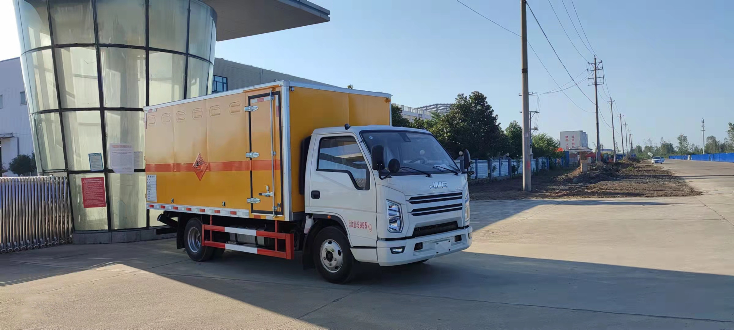 江鈴帶前開側門藍牌國六民爆車嚴格按照公告尺寸制作。外板采用優質冷軋鋼板帶百葉窗,內飾為導電性能良好的鋁平板有透氣孔,矩形骨架結構內部填充防潮阻燃擠朔板,復合加鉚合工藝。廂體四周鋁合金包邊及包角,車廂底板鋪設防靜電膠皮,廂體前臉50公分高鋪設防靜電膠皮。后部設置對開門,可選裝側門位置,廂體內部兩側安裝捆綁貨物的臥環。廂體內部安裝煙霧報警器及防盜報警感應器。車廂一周粘貼橙色放光帶,箱體粘貼 菱形告示牌,安全告示牌(不銹鋼材質),危險品牌,箱體安裝示廓燈(前白后紅),拖地靜電帶。江鈴帶前開側門藍牌國六民爆車廂體后門及側門采用一次成型密封膠條,底板及所有門合頁處均做防銹處理,箱體采用雙組份丙稀酸油漆制作,所有門桿及合面均為熱鍍鋅材質。