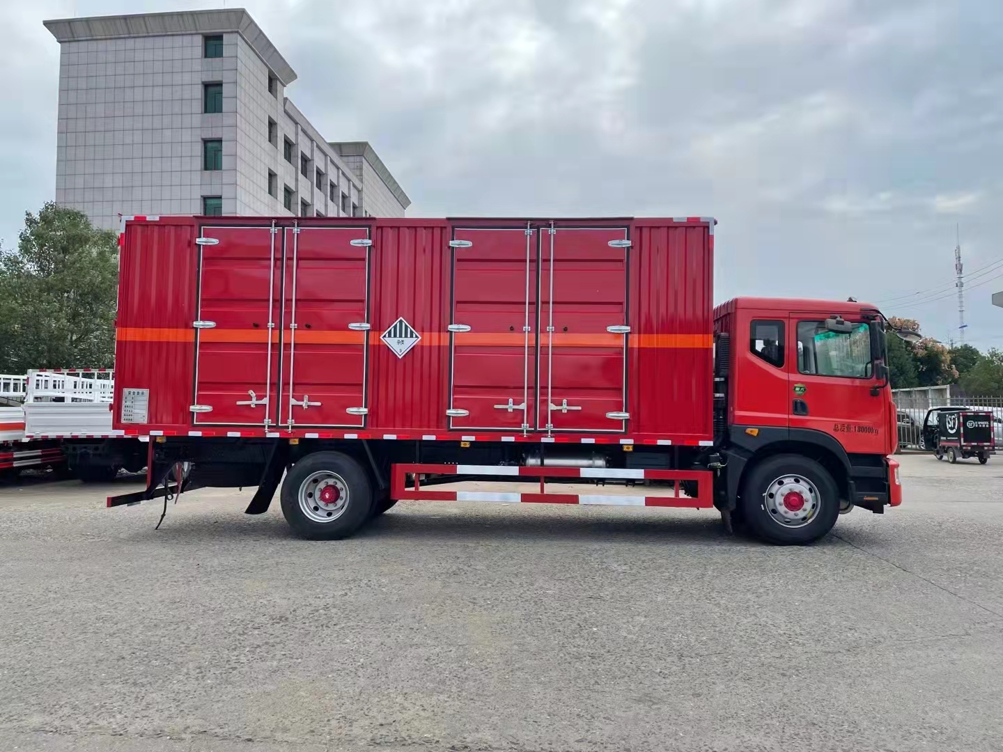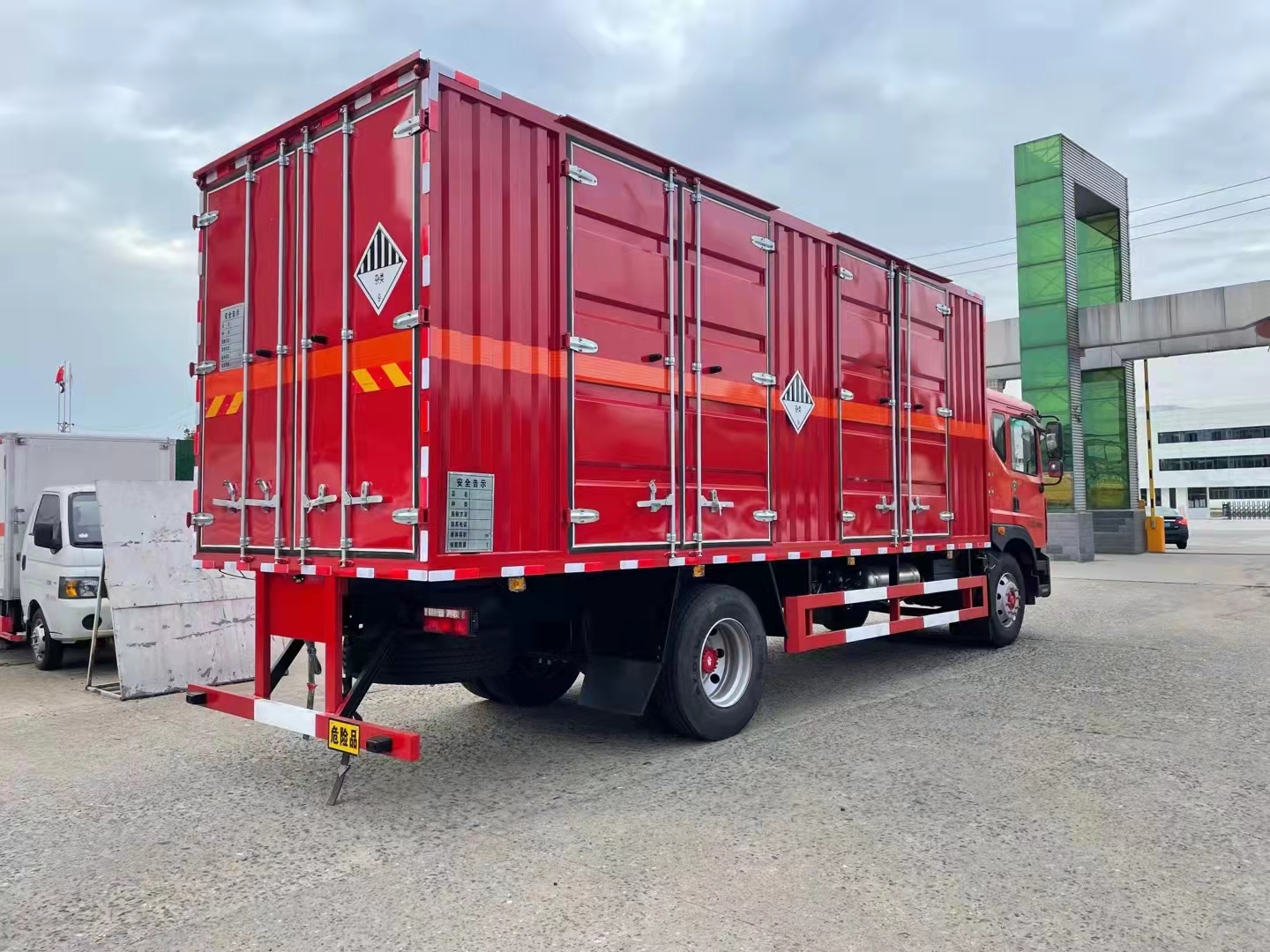 東風D9國六整車紅瓦楞板危險品車采用的是瓦楞板箱體,為了讓客戶更方便固定貨物,箱體中部我司采用的橫桿設計,固定貨物很緊,更好地防止貨物撞擊箱體,讓車輛受損。除此之外,客戶還可以根據自身需求在箱體內采用卡槽設計、臥環設計或者加裝起重設備,讓箱體裝卸貨物更方便。