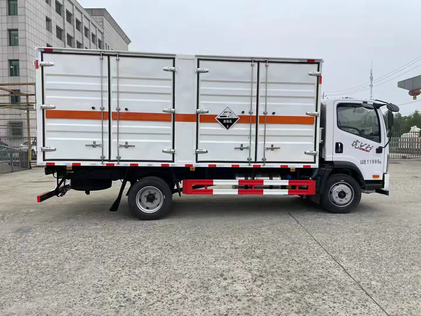 腐蝕品運輸都少不了專用的車輛,該車在危險品車中被劃分為八類危險品。為了選擇更方便,程力專汽特為您定制了解放國六5米1帶雙開雙側(cè)門腐蝕性物品廂式運輸車,以下是詳細(xì)配置介紹: