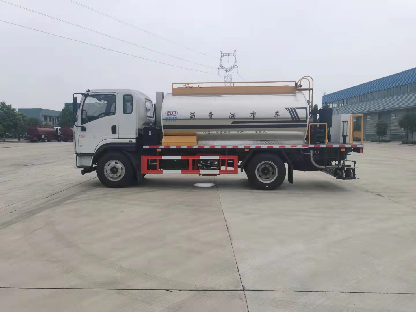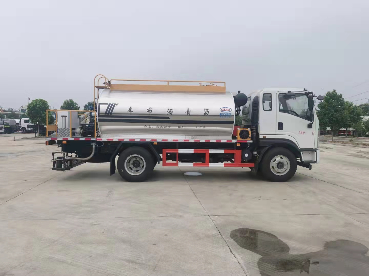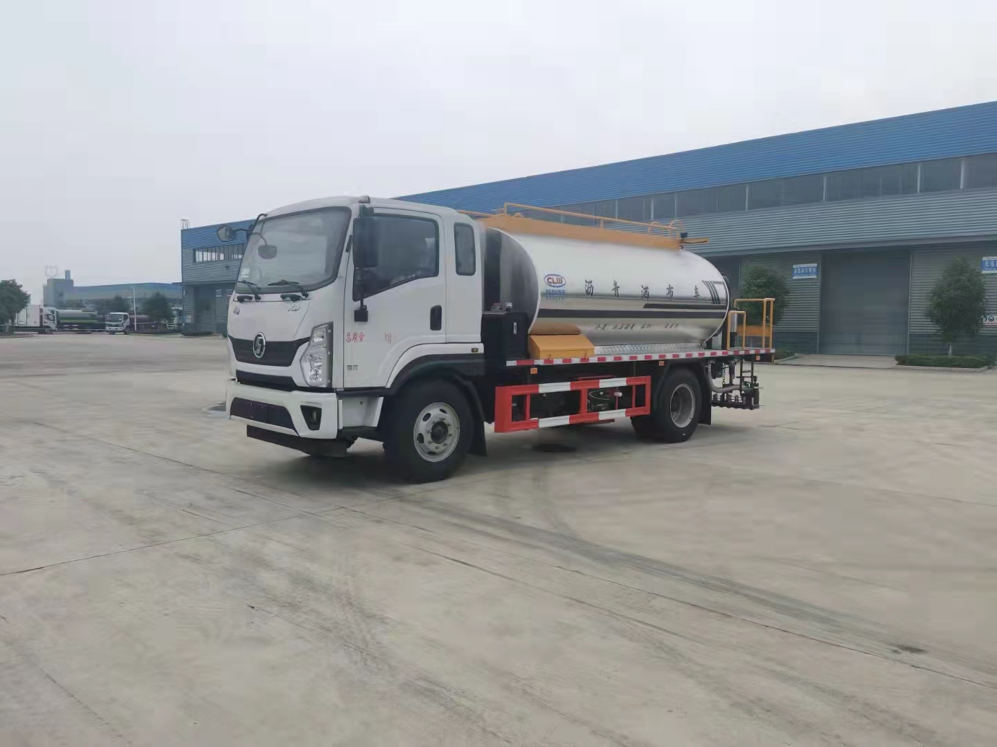 8噸陜汽軒德X9國六智能型瀝青撒布車整車型號:CL5162GLQ6LS。X9排半2120駕駛室,帶電動門窗、中控鎖;離合助力;100Ah免維護雙電瓶;、發動機D40TCIF1(云內184馬力)、法士特8擋(帶取力器)、車架861x232/6+4雙層、145/3.2T前橋、后橋145/8T、130L鐵、輪胎9.00R20/16PR。