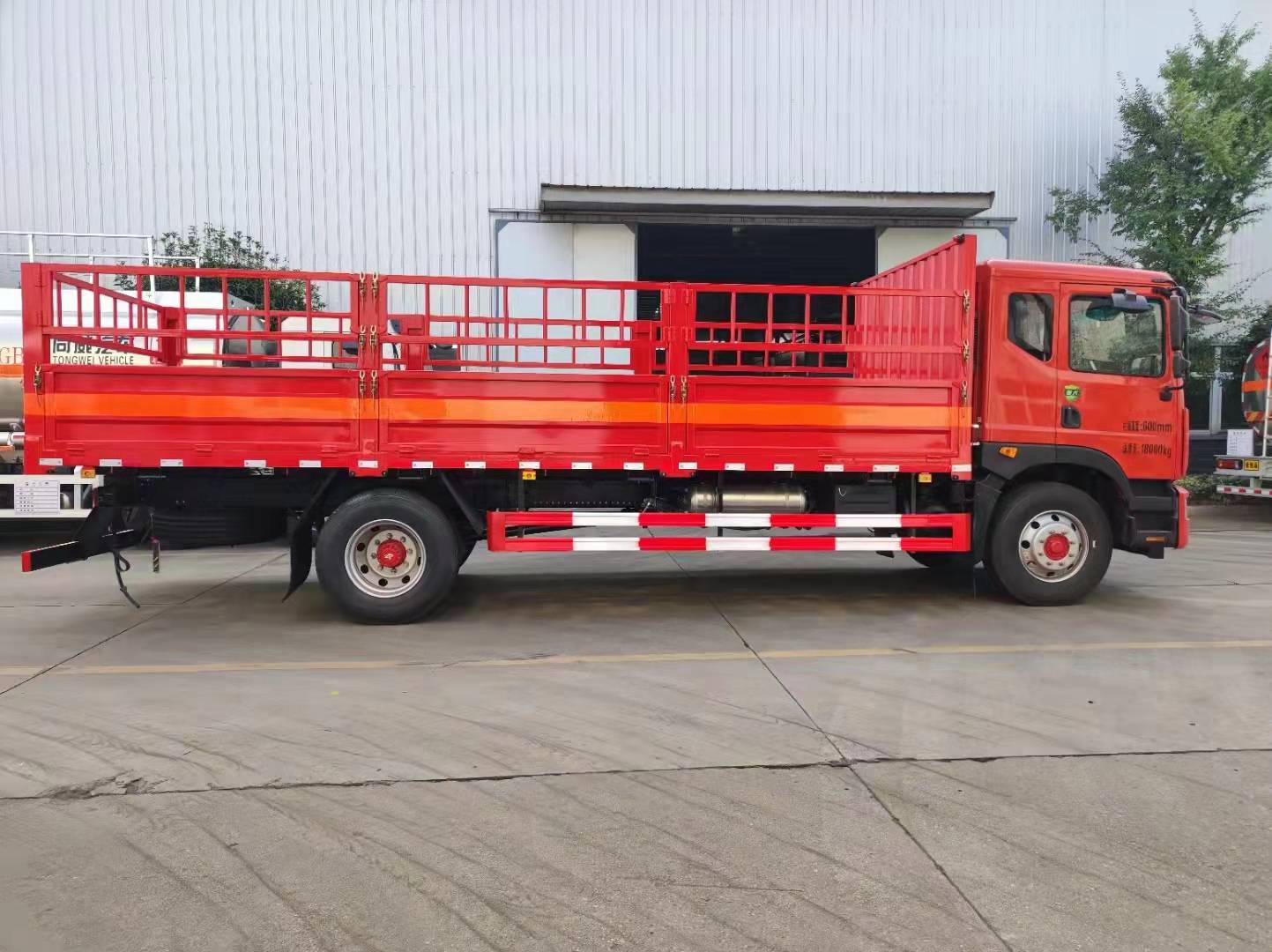 東風多利卡D9氣瓶運輸車整車尺寸:9000X2550X3020(mm),貨箱尺寸:6750X2350X600(mm),原廠危貨底盤5300軸距,駕駛室配置:6檔變速箱,帶ABS,前盤制動,限速器,排氣管前置,9.00R20輪胎,發(fā)動機:B6.2NS6B230,防飛濺,自動調(diào)整臂,空調(diào),廂體為金屬骨架結(jié)構(gòu),廂體生產(chǎn)工藝采用4mm底板,鋪靜電膠皮,高600mm的墻板,上側(cè)配可拆卸護欄。配備隨車工具。可原裝液壓尾板,車輛嚴格按照公告制作。