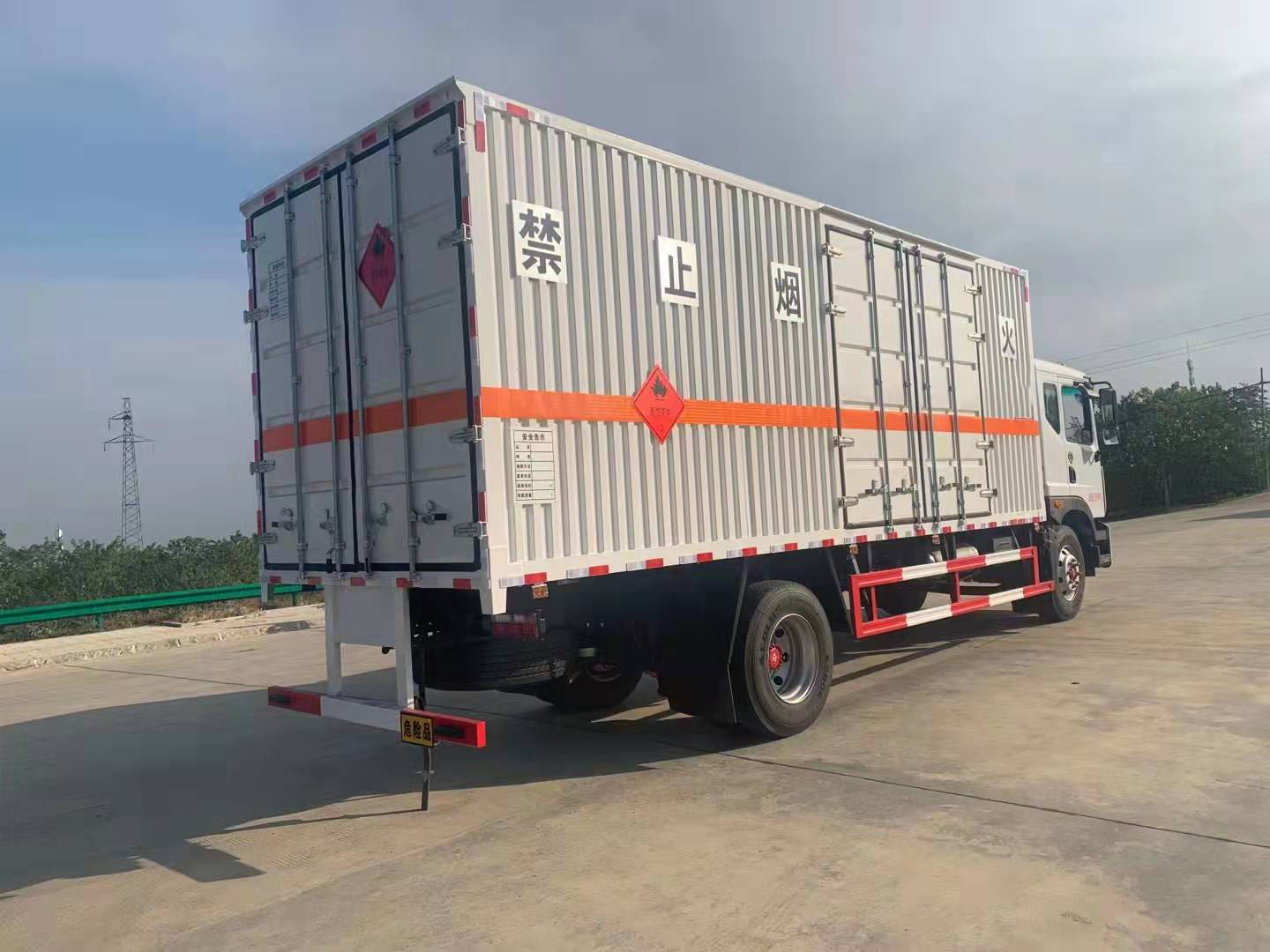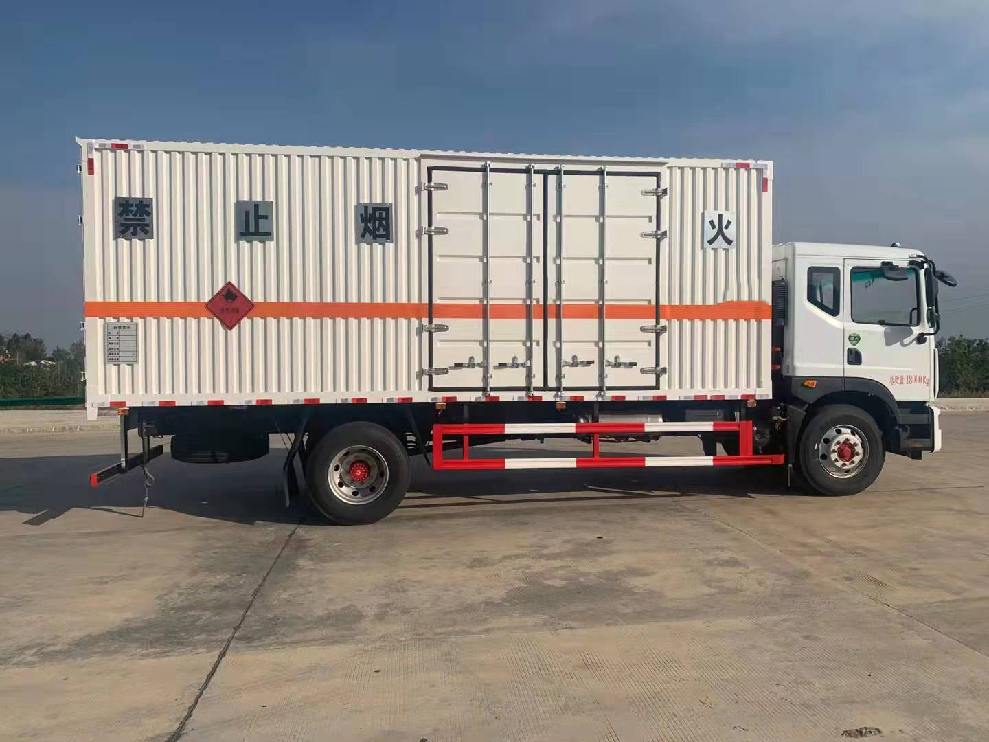 東風(fēng)D9國(guó)六單開瓦楞板危險(xiǎn)品車箱體還可以選擇平板骨架結(jié)構(gòu),箱體外為平板,采用冷軋透氣鋼板,內(nèi)飾為金屬骨架結(jié)構(gòu),箱體上側(cè)安裝防雨透風(fēng)透氣孔,底板為花紋板,上鋪防靜電膠皮,箱體右側(cè)開側(cè)門,箱體內(nèi)測(cè)加裝固定貨物挎勾,門框帶防盜報(bào)警器,頂部帶煙霧報(bào)警器,隨車配工具、滅火器、三角頂燈,防靜電拖帶,。
