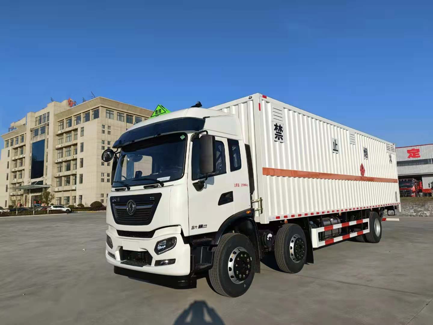 東風天錦KR三軸國六高頂雙臥危險品車采用的是東風天錦6*2小三軸危險品運輸車,東風DDi75E260-60發動機,法士特八檔變速箱,D560KR高頂雙臥駕駛室,10噸后橋,295/80R22.5 18PR真空胎,空調,中控門鎖,電動玻璃,行車記錄儀,雙預警,符合全新法規項。貨箱尺寸:9800*2450*2400mm。