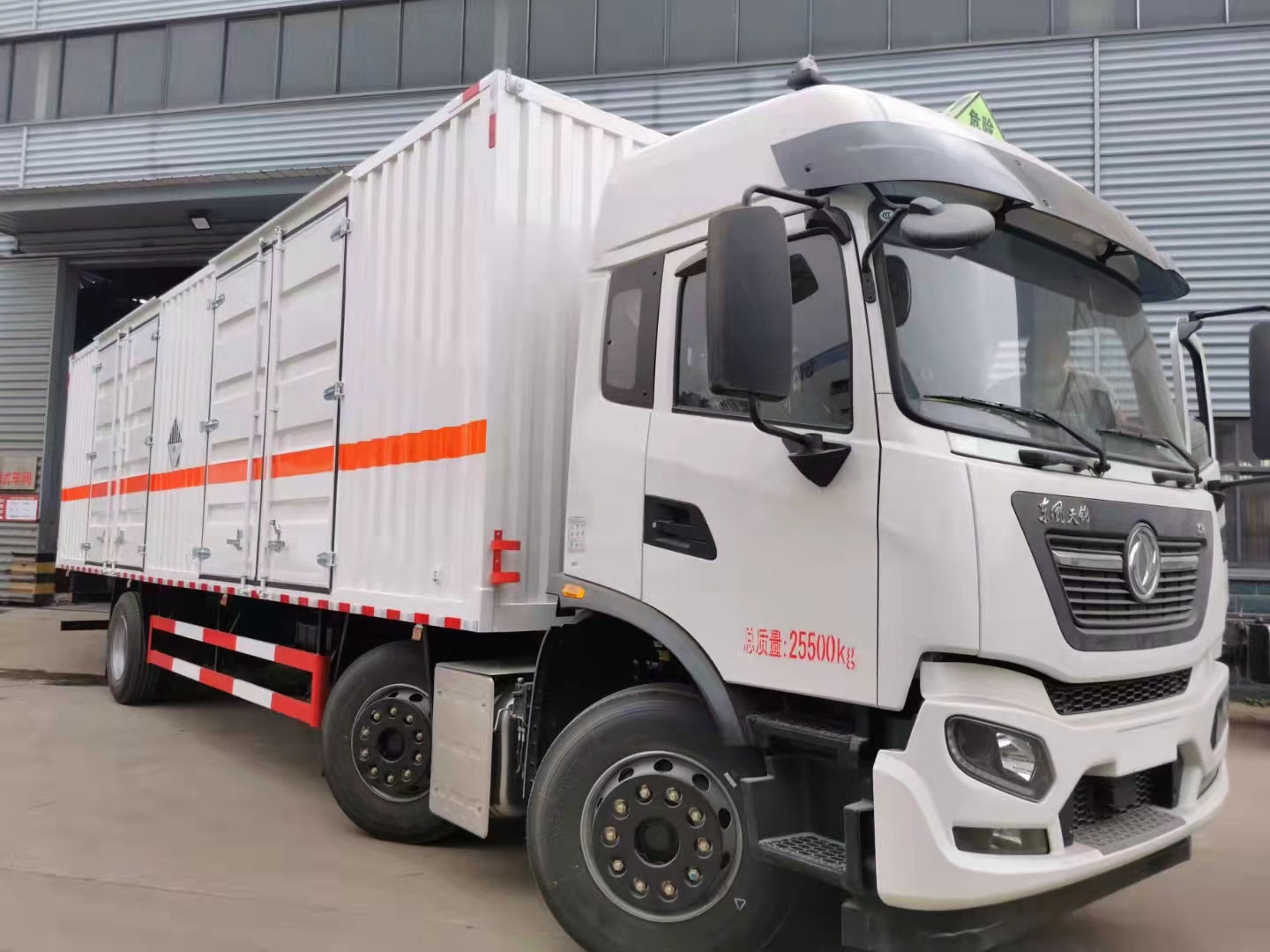 東風天錦三軸高頂雙臥9米6危險品車采用瓦楞板箱體,廂體四周鋁合金包邊及包角,車廂底板鋪設防靜電膠皮,。后部設置對開門,可選裝側門位置,廂體內部安裝氣體感應器及防盜報警器。車廂一周粘貼橙色放光帶,箱體粘貼 菱形告示牌,安全告示牌,危險品牌,箱體安裝示廓燈(前白后紅),拖地靜電帶。