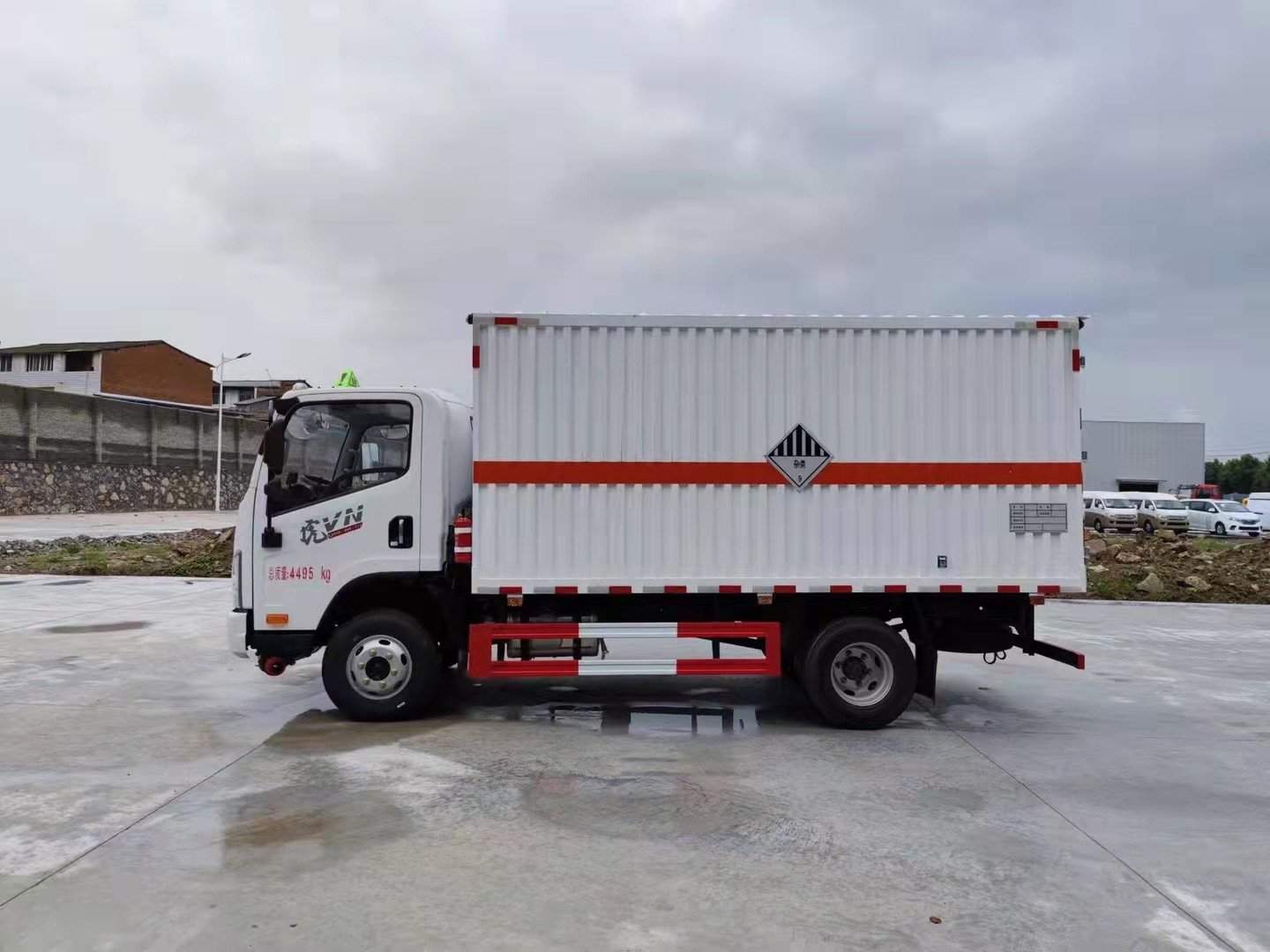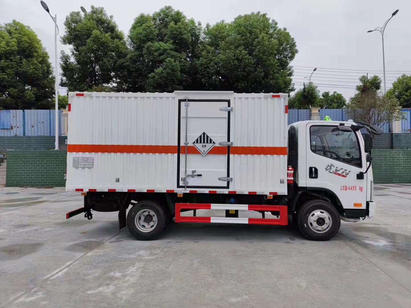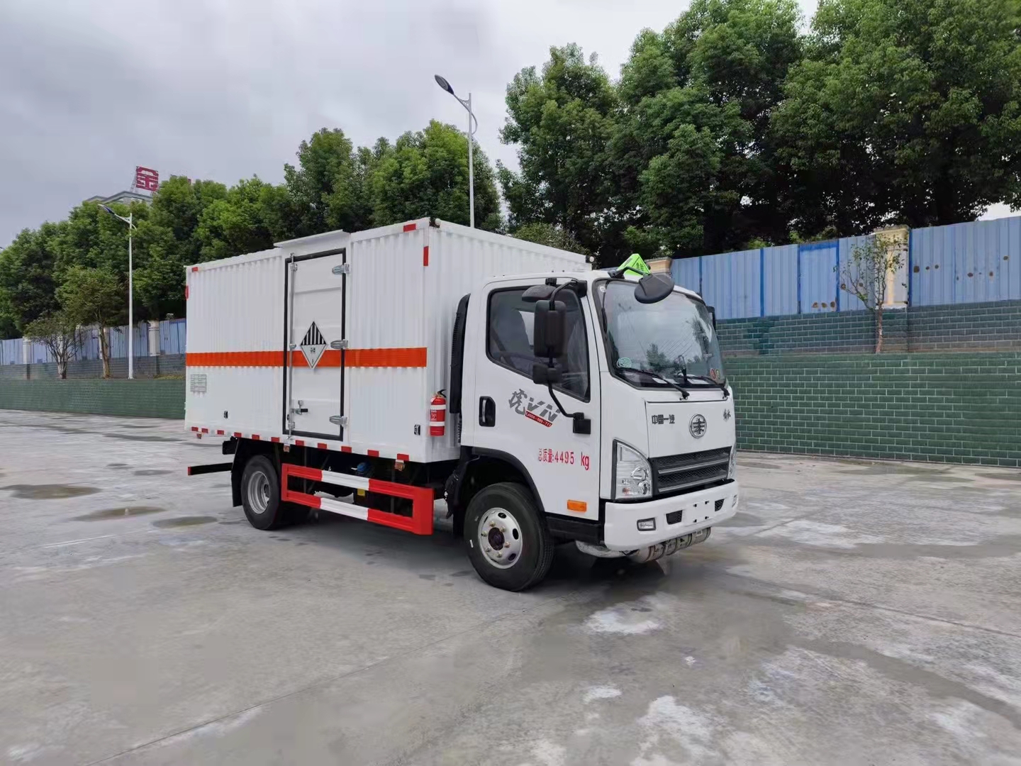 解放虎V國六瓦楞板藍(lán)牌危險(xiǎn)品車采用的解放虎V濰柴130馬力發(fā)動(dòng)機(jī),專門針對(duì)二類易燃?xì)怏w廂式運(yùn)輸,采用的是多功能方向盤,空調(diào)+電動(dòng)門窗+中控鎖,80L鋁合金/錫柴為120L油箱,20L尿素箱/錫柴為16L,7.00R16真空胎,后處理器前置+排氣火花熄滅器+前盤后鼓制動(dòng)器+限速79KM/H,北斗+GPRS行車記錄儀,爆胎應(yīng)急安全裝置,帶靜電拖地帶,LDW+FCW。原廠危險(xiǎn)品專用底盤。