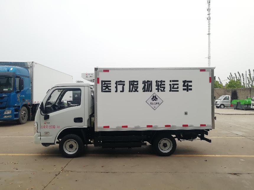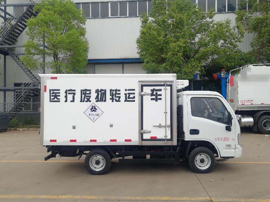 躍進國六后單輪醫療廢物轉運車廂體特點:(1)醫療廢物轉運車是根據醫療垃圾運輸的特點設計而成,廂體為全密閉型,確保廂體內盛裝的醫療垃圾與外界的隔斷,同時又方便貨物的裝卸。