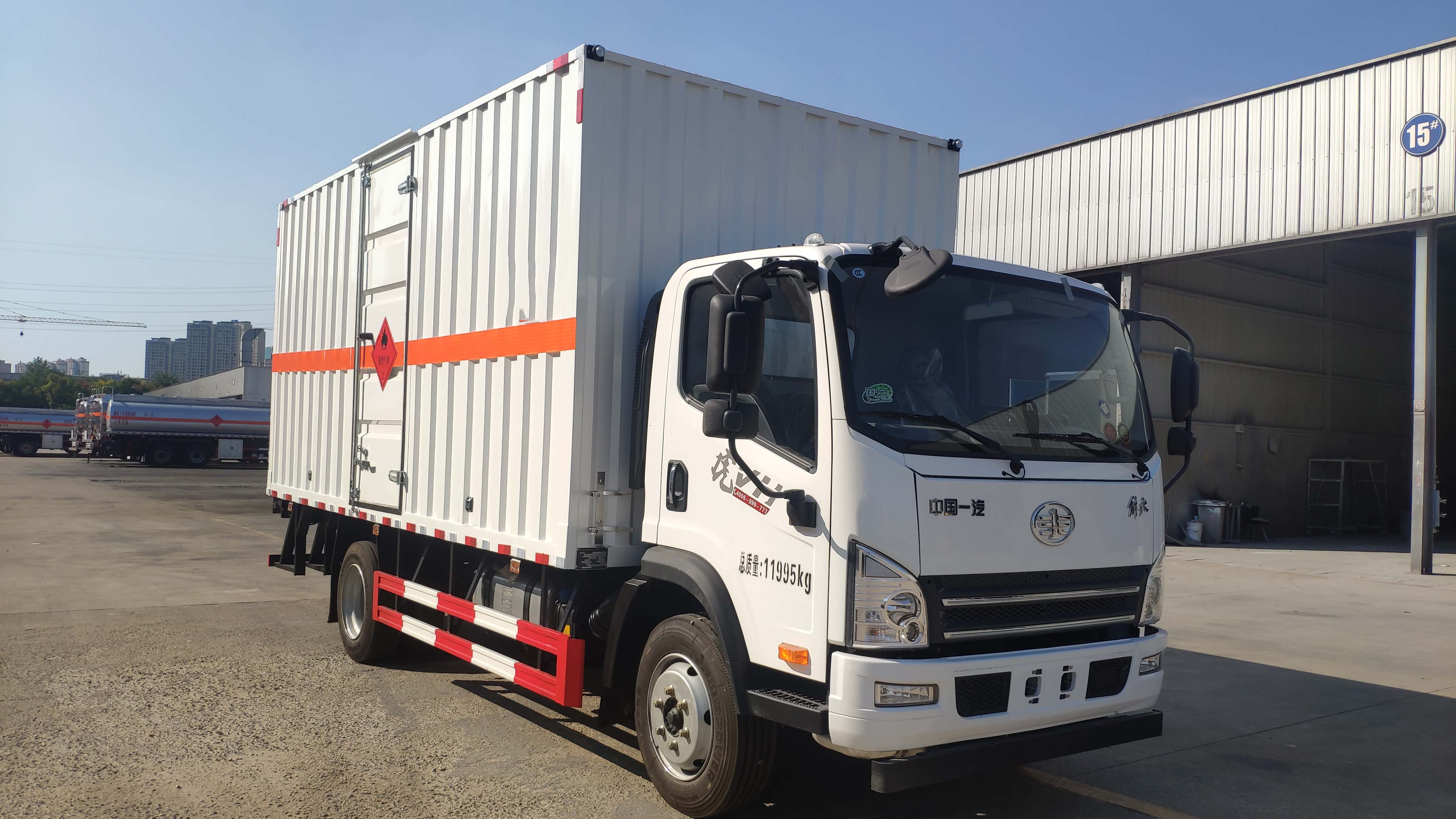 解放虎VR國(guó)六3.4米危險(xiǎn)品車外板采用免漆板及一次性沖壓成型具有防雨功能的通風(fēng)窗,貨廂內(nèi)蒙皮采用合金板有透氣孔,復(fù)合加鉚合工藝,內(nèi)襯為矩形管骨架牢靠穩(wěn)定,貨廂面板內(nèi)外蒙皮之間采用阻燃隔熱材料填充,廂體外部四周鋁合金型材包邊,底板和車廂前下部鋪橡膠皮,后門雙開,可選開側(cè)門,內(nèi)部裝固定貨物的臥環(huán)或護(hù)板,安裝煙霧報(bào)警器、防盜感應(yīng)器。車身附件靜電接地帶、滅火器、防火罩、危險(xiǎn)品三角燈、橙色反光帶、CCC反射器、菱形標(biāo)志牌、危險(xiǎn)品牌、安全告示齊全。