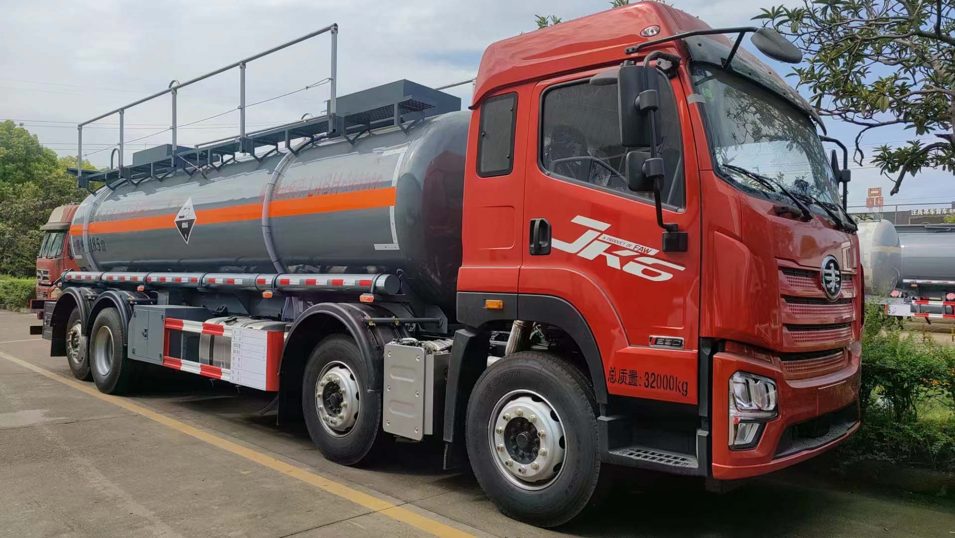 腐蝕品罐式運輸車采用的專用襯塑罐體,根據不同運輸介質襯塑的厚度不一樣。為了讓運輸容量更大,很多客戶都選擇的是4軸的車,追求輕量化此時選擇的都是解放JK6國六前四后六腐蝕品罐式運輸車,以下是詳細配置。