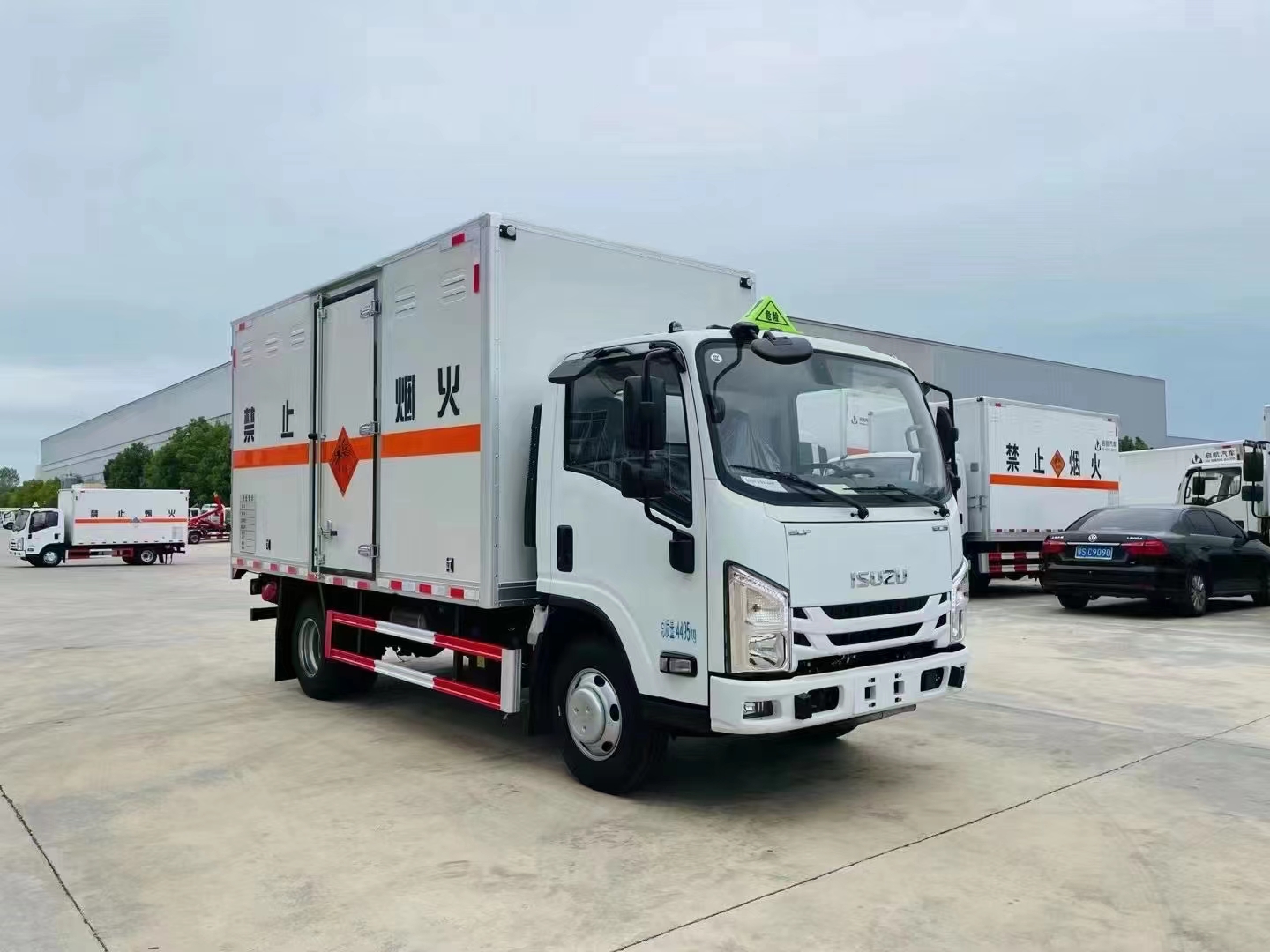 五十鈴國六藍牌危險品車采用的是危險品車專用底盤,五十鈴4JB1發動機,麥格納變速箱5檔箱,帶斷氣剎,電動門窗,遙控中控門鎖,空調,7.00R16LT 8PR輪胎,排氣管前置,標配ABS、ADAS(LDW+FCW)外后視鏡加熱、倒車雷達、中控鎖,防超速聲音報警,85萬KM耐久,駕駛室270°無死角,高強度鋼車架(700L),后橋采用600MPA高強度鋼,后橋5噸,選配多功能方向盤、MP5、倒車影像、定速巡航,前盤制動,雙預警。