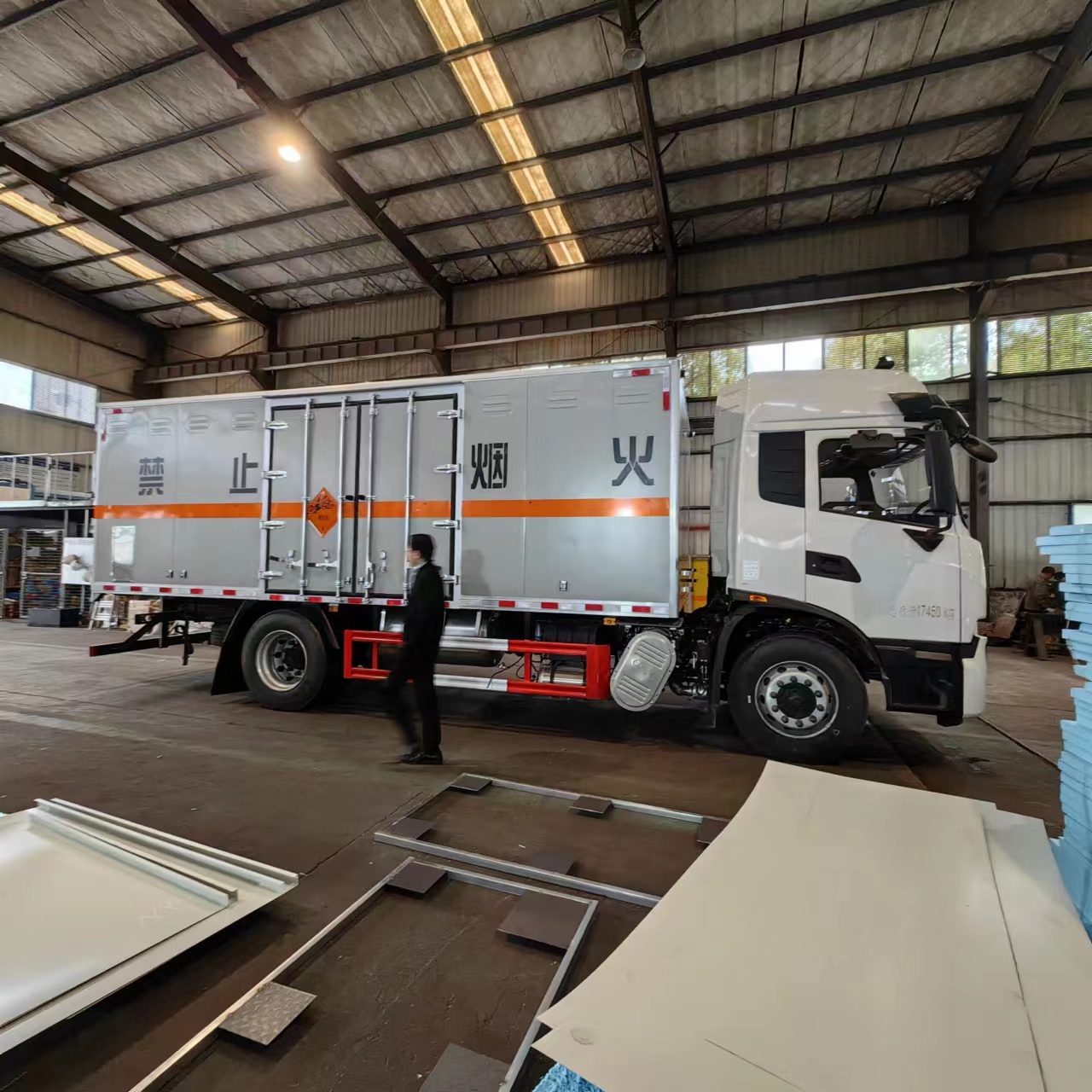 東風天錦KR國六高頂雙臥危險品車采用的是高頂雙臥駕駛室,康明斯210馬力發動機,雙層駕駛室、可讓押運員和危險品從業資格證人員更好地休息,方正時尚的前臉大氣的黑色中網,讓您使用更省心。該車采用的是免漆灰色工藝,看起來大氣時尚美觀。該車貨箱尺寸:6800*2450*2400mm,額載噸位可達10噸。為了方便長途運輸,該車加裝了輪胎淋水器、加大油箱以及活動式工具箱。讓您在長途過程中使用更省心!