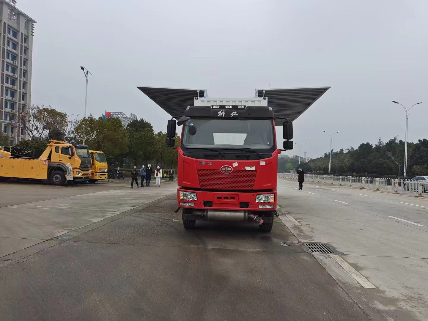 廂式欄板車結(jié)構(gòu),外厚度為1.1毫米厚度武鋼冷軋鋼板(或沖壓成瓦楞板,以公告為準),內(nèi)加強“幾”字型加強梁,車體底板加強處理并做防靜電處理。車體的左側(cè)、右側(cè),和后欄板栓鉤結(jié)構(gòu),可向下打開,方便上下貨物,車體為空曠式車型,大大減少了運輸物品因為狹窄空和強烈碰撞產(chǎn)生氣瓶爆炸的危險性,箱體外觀涂裝白色油漆,在欄板的中間位置粘貼橙色的危化車標帶,并在車體的左、右、后部粘貼危險品標識。駕駛室內(nèi)部配備兩只滅火器,后杠處安裝防追尾事故的緩沖固塊。此款車輛屬于國家規(guī)定的危險品運輸車。