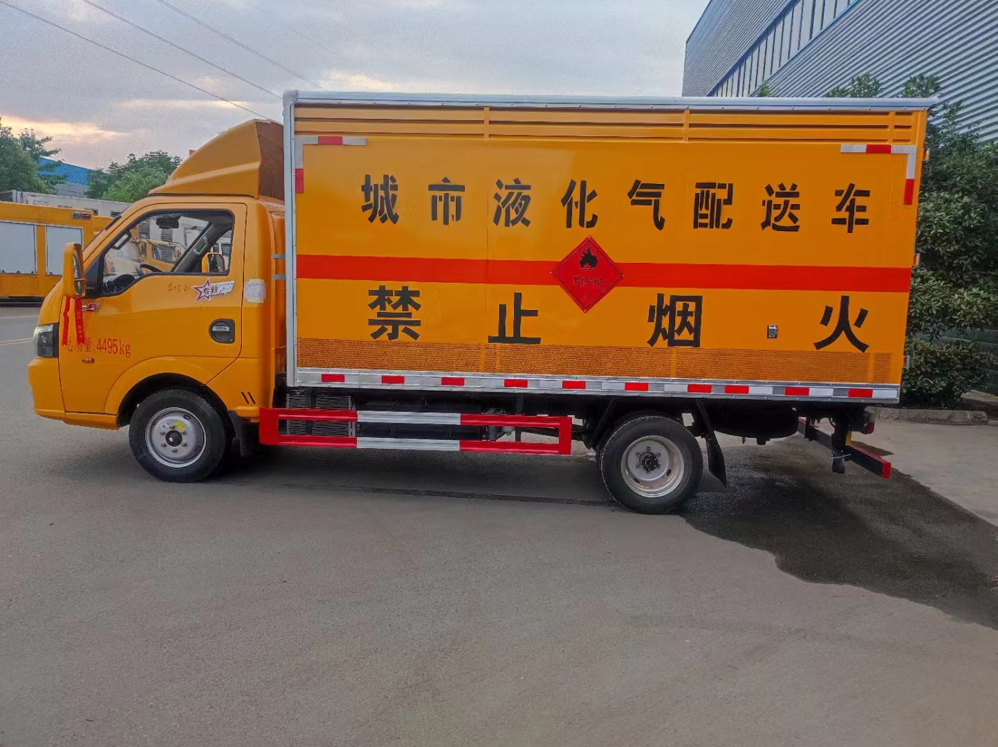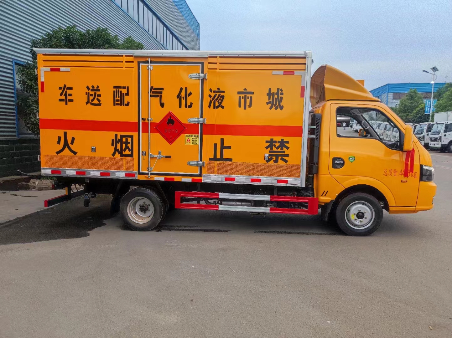 為了統一管理,該車匹配有定制的顏色,尤其是液化氣瓶配送都采用的是定制全部工程黃,讓運輸的過程能一眼明示。采用的是外冷軋板內鋁板中間夾阻燃材料,帶中開側門,尾部帶后雙開門,裝卸貨方便。為了讓貨物在箱體內流通更方便,該車貨箱全部采用的是上下透氣孔結構,更安全。