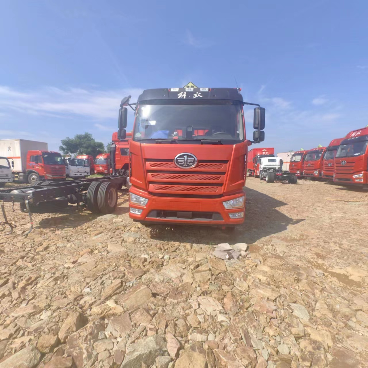 解放J6L國六帶左右開門瓦楞板危險品車采用的是專用危化品底盤,新J6L全浮平頂排半駕駛室,帶空調、電動玻璃、電動后視鏡、帶大柴CA4DK1-22E61發動機,CA8TAX090M變速器,軸距5300mm,378沖焊橋,速比4.875,輪胎275/80R22.5-18層級,帶中間座椅。該車采用的是空氣懸架,車輛自重輕,讓您額載更大。