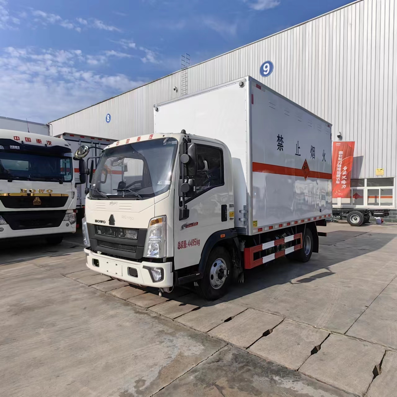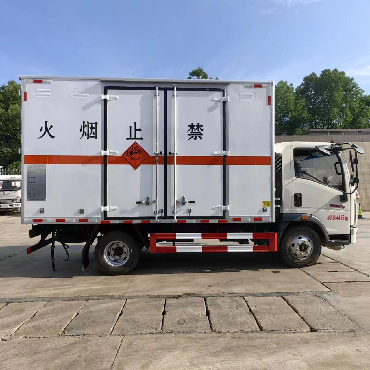 重汽豪沃2.4米高藍牌爆破器材運輸車采用的危險品專用駕駛室,濰柴130馬力發動機,該車設計盡現,以設計之名開啟全新的境界,生活靈感和始終陪伴,為您每一次出發創造舒適與便捷。采用的是寬體駕駛室,3人座駕駛室,該車帶中控鎖、電動門窗、原廠空調,匹配的是專用的防爆箱體。選用冷軋板折彎材料,貨廂基本結構為金屬骨架全金屬外蒙皮封閉式,金屬骨架應具有高強度和高剛度特點,金屬骨架管體尺寸不小于 20mm X 20 mm 度不小于 2 m,管件連接采用焊接方式。貨廂內蒙皮的材料選用非燃燒性材料。內壁采用鋁合金板蒙面。貨廂六面(包括底板)內外蒙皮之間采用阻燃隔熱材料填充,金屬外蒙皮外側噴涂淺色防火漆。底板應使用可承重的鐵板或鐵木混合材料,所用木材必須經過防火處理。地面應平整,如有焊口必須修平。