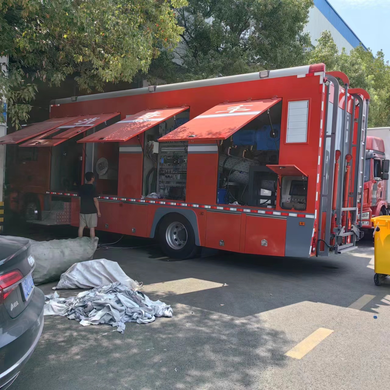 汕德卡國六焚燒消毒車采用的是寬體駕駛室,經典駕駛室寬敞舒適3人座,可以用便于乘坐駕駛員、押運員、記錄員,不用擔心不夠坐的問題。一臺車能解決,節省了運營成本。該車匹配的是多種發動機,帶中控鎖、電動門窗、原廠空調。根據用戶要求匹配有焚燒設備,箱體全部采用的是全鋁車身,左右全部采用的是氣動開門形式,方便檢修,設備尾部帶提升機構,方便垃圾桶上下裝貨。
