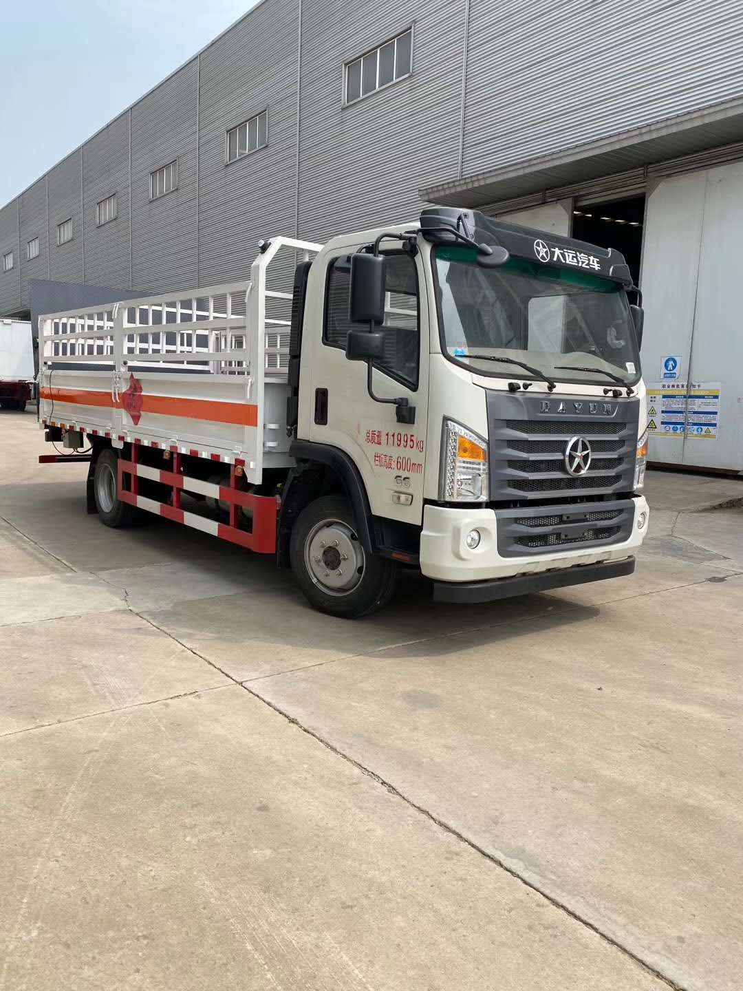 大運5米8國六氣瓶車采用的是我司新式的工藝,可拆卸欄板貨箱,貨箱尺寸:5800*2300*600mm,額載噸位可達7噸,底板采用的是加厚型花紋板,尾部可選擇帶尾板和不帶尾板兩種形式。箱體全部安裝危險品車要求定制靜電拖帶和危險品標識。