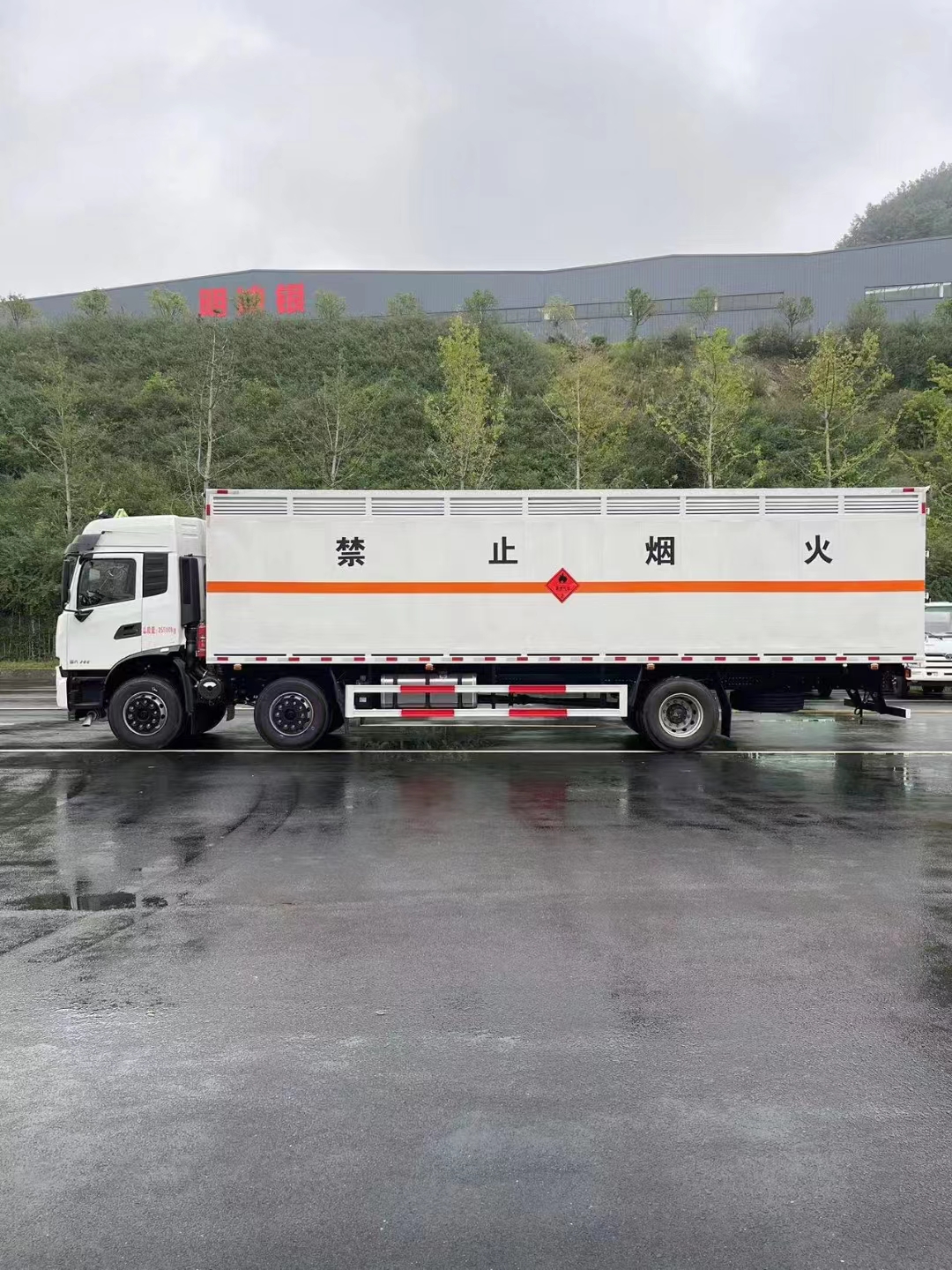 東風天錦KR國六三軸易燃氣體廂式運輸車選用的是定制型箱體,上下帶百葉窗,底部帶通風孔,尤其是針對氣體是往下釋放的,箱體全部采用的是外平板,上下帶百葉窗,箱體里面全部帶槽鋼固定。尾部可加裝液壓尾板,整車不超重。