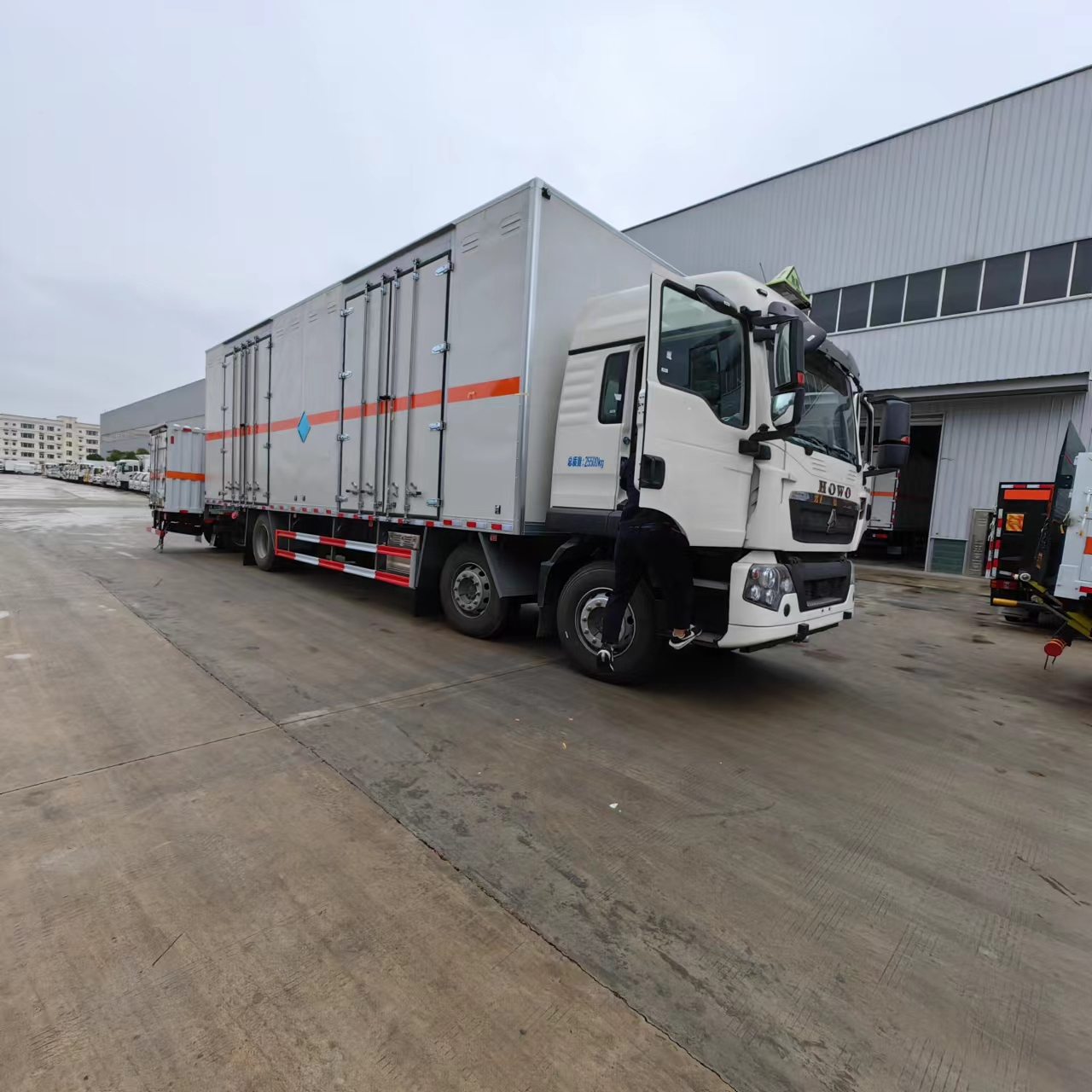 重汽豪沃9米6三軸爆破器材運輸車選用的是我司專用危險品車底盤,可選濰柴310馬力或250馬力發動機,匹配有中控鎖、電動門窗、原廠空調,寬敞3人座駕駛室,無論是司機還是駕駛員在車上都感覺非常舒適。車輛帶阻燃箱體,側門可多選,讓您裝貨更方便。與此同時為了讓用戶裝載容量更大,我司的箱體全部采用的是高箱體。無論是裝煙花還是黑火藥等物品都非常實用。