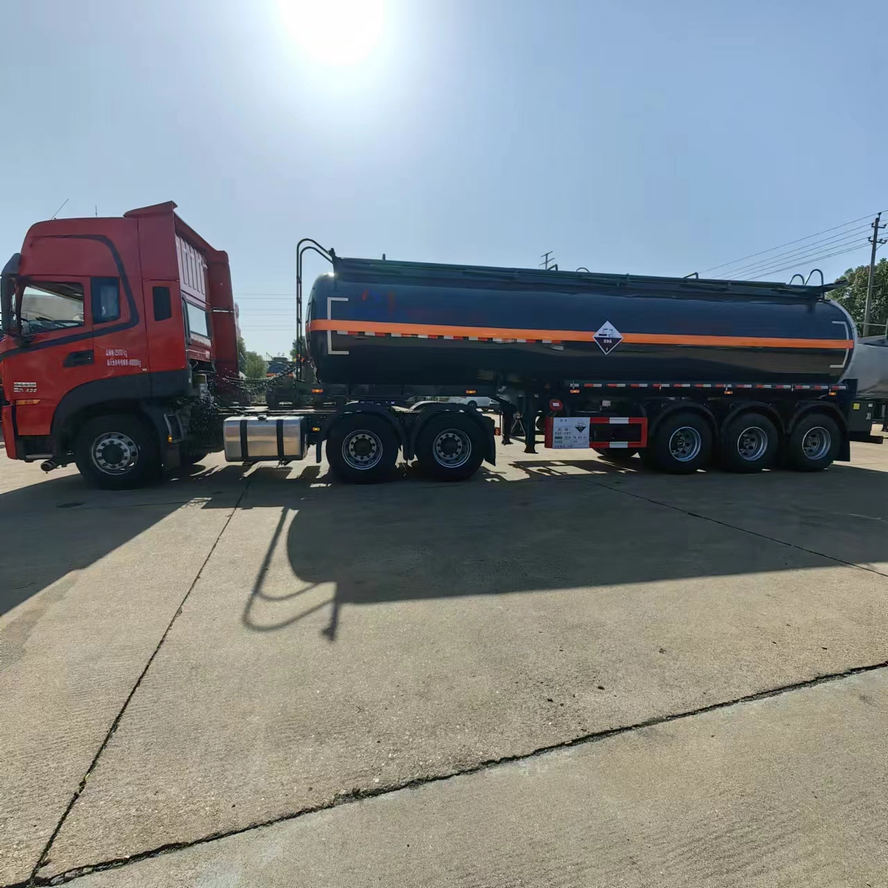 28方鹽酸腐蝕品半掛運(yùn)輸車(chē)采用的是Q235碳鋼材質(zhì)制作,筒體采用的是標(biāo)準(zhǔn)設(shè)計(jì)厚度,罐體內(nèi)部采用的是聚乙烯襯塑,圍板內(nèi)部防腐處理,罐體采用的是全塑料進(jìn)料口。罐體內(nèi)采用的是防腐設(shè)計(jì),罐體頂部帶DN100氣動(dòng)不銹鋼襯塑海底閥。定制的是專(zhuān)用鋼襯塑球閥。尾部帶專(zhuān)用卸料口。為了讓用戶(hù)使用安心,加裝有活動(dòng)式水箱,防止罐體內(nèi)氣體卸料,采用進(jìn)水口可稀釋內(nèi)部空氣,使用更安全。