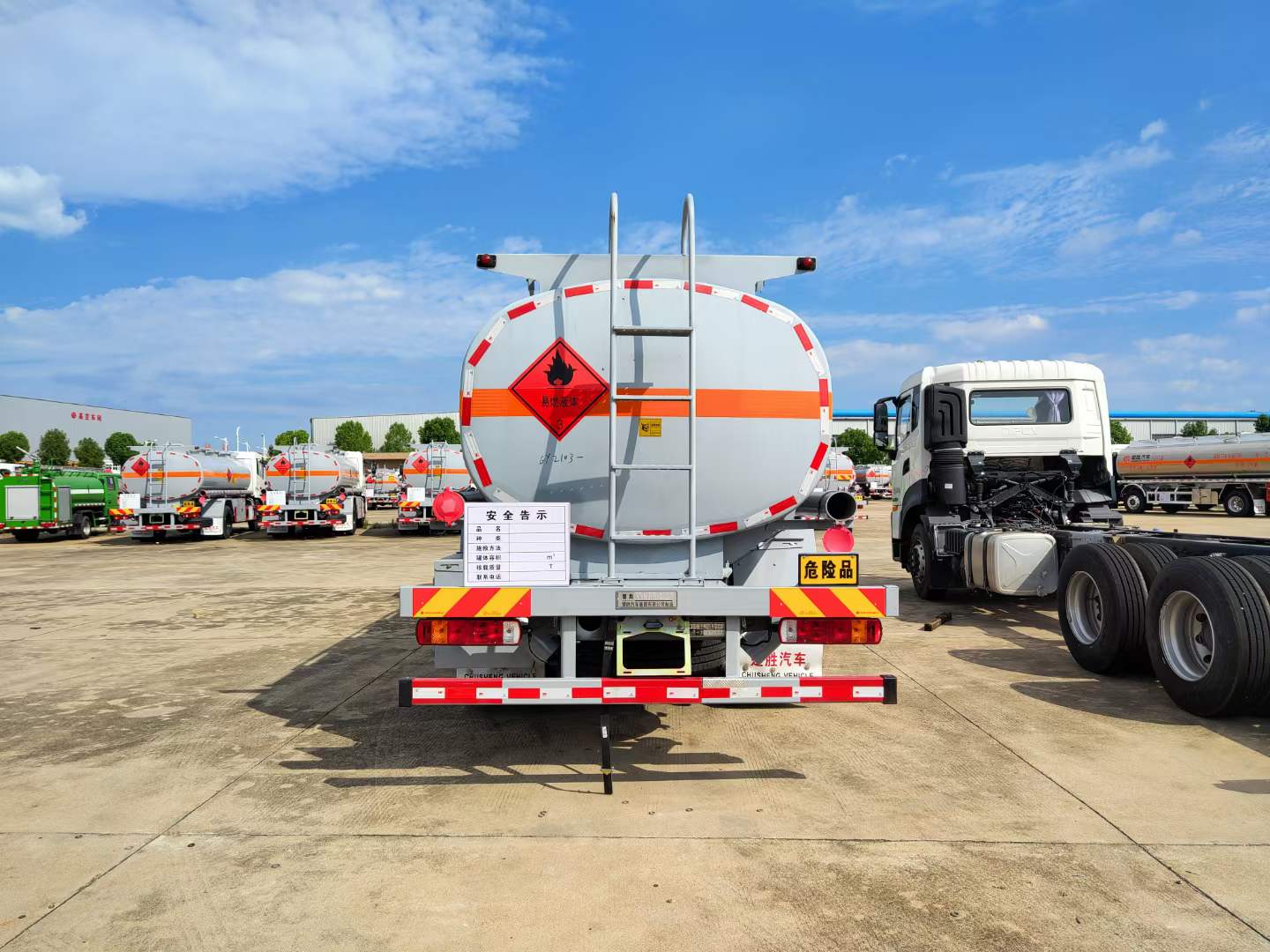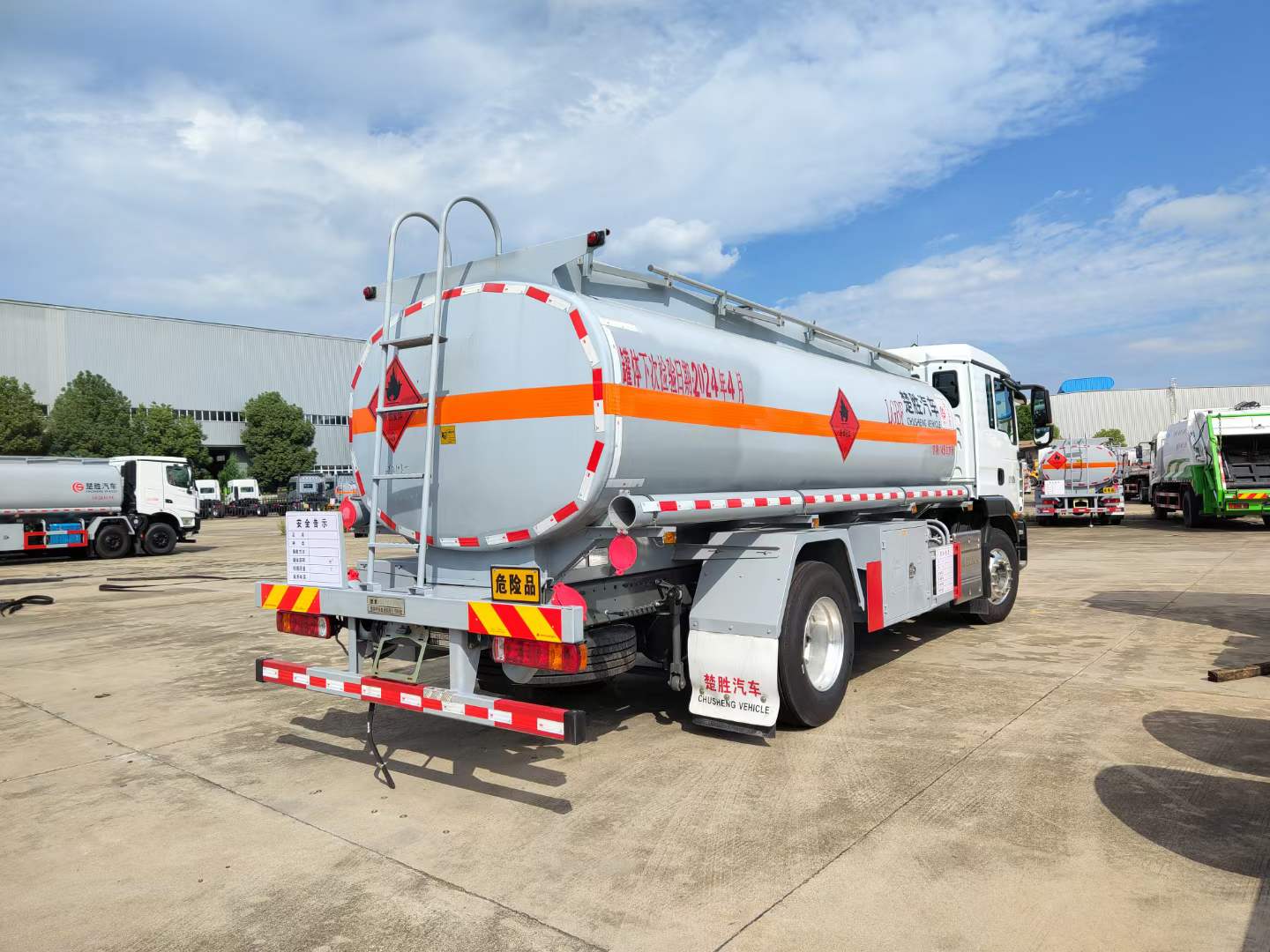 重汽汕德卡單橋油罐車可以出汽、柴油,大、小方量。環(huán)保、燃油齊全。選用的是危險品專用底盤,底盤型號:ZZ5186XXYK501GF1,汕德卡危化;G5-K駕駛室,軸距4700,自動空調(diào),電動電加熱后視鏡,主氣囊+副簡易型座椅,采用的是定制型濰柴245馬力發(fā)動機,WP7H245E62發(fā)動機,重汽8檔HW95508STC變速箱+HW45ZC法蘭式取力器,VPD050QB前軸(盤),MCJ09BGY自調(diào)臂單后橋(鼓),速比4.63,雙層車架(7+4/250),前少后空氣懸架(3/-),國產(chǎn)方向機,前置排氣系統(tǒng),EBS+ESC,高位保險杠(全金屬),鋁合金車輪(國產(chǎn)),295/80R22.5輪胎(縱向花紋/18PR),300L油箱,LDWS+FCWS(帶雷達),中國重汽智能通B版,電磁式電源開關(guān),轉(zhuǎn)向輪爆胎應急裝置,選裝胎壓監(jiān)測系統(tǒng),選裝危險品標志燈。重汽汕德卡單橋油罐車采用的是我司專用槽鋼罐體,帶防浪板,在油罐車裝卸過程中,實現(xiàn)全封閉氣體回收,限制油氣向大氣排放。油罐車通過缷油管路缷油的同時,加油站油罐中的油氣通過回氣管路回到油罐車中。油罐車將油氣帶回油庫進行處理,達到油氣回收的目的。匹配有海底閥、呼吸閥、安全閥等裝置,更好的貼合車輛使用需求。
