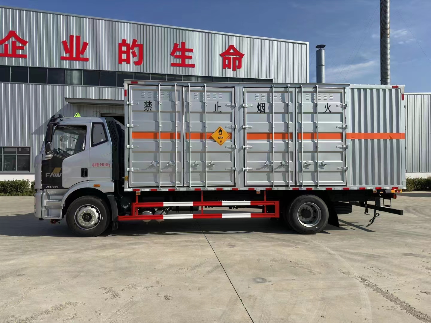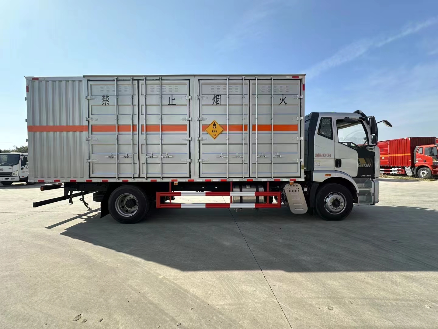 解放J6L國(guó)六銀色帶左右開(kāi)門(mén)危險(xiǎn)品廂式運(yùn)輸車(chē)選用的是專(zhuān)用危險(xiǎn)品車(chē)底盤(pán),可選大柴4缸220馬力發(fā)動(dòng)機(jī)和6缸240馬力,為了方便裝卸貨,該車(chē)匹配的是左右兩側(cè)開(kāi)門(mén)?沙2類(lèi),3類(lèi),5類(lèi),8類(lèi),9類(lèi),左右兩側(cè)開(kāi)門(mén),上戶(hù)年檢無(wú)憂(yōu),裝卸貨方便。廂體尺寸:6800/7500*2450*2500mm,額定載質(zhì)量:9980kg(保險(xiǎn)費(fèi)用低)。箱體采用的是烤漆板,采用的是冷軋板折彎而成的骨架板,帶鏤空式的骨架,敞開(kāi)式的花欄,裝載貨物更方便,駕駛室尾部可加裝吊機(jī),裝貨更方便。該車(chē)定制的是粉色,更加醒目。
