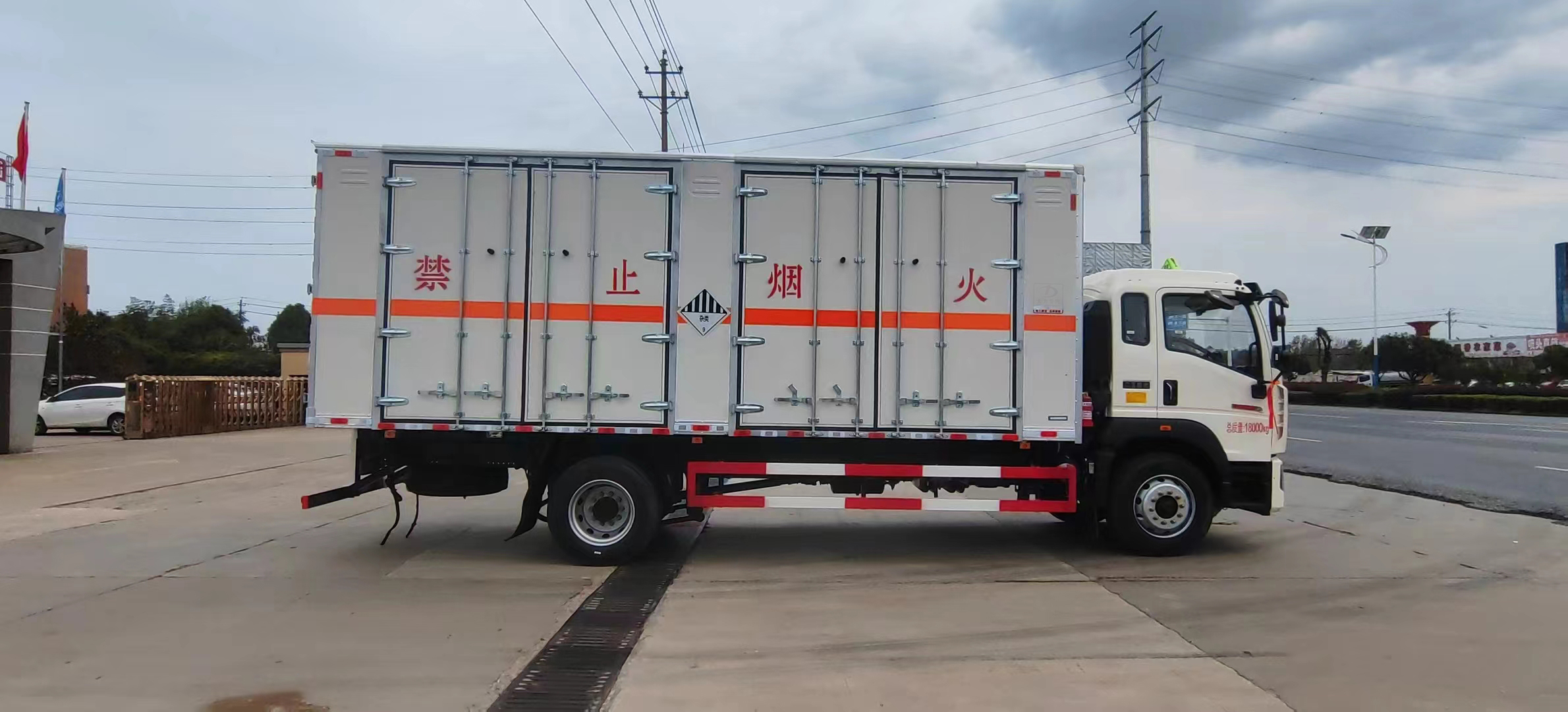 重汽豪沃國六6米8帶左右開門危險品車選擇的是危險品專用底盤,濰柴220馬力發動機,8變速箱,275/80R22.5.輪胎,帶中控鎖、電動門窗、原廠空調。帶盤式制動,ABS,限速器,輪胎應急防爆裝置,帶新規雙預警(車道偏離預警,前向碰撞預警)。該車嚴格按照公告尺寸制作,外板采用1mm厚冷軋板有一次性成型的百葉窗,內飾為導電性能良好的鋁板有透氣孔,內襯為矩形管骨架牢靠穩定,內部填充為透氣防潮阻燃的擠塑板,四種材料經現代工藝復合而成,廂體外部上下鋁合金型材包邊,底板和車廂前下部鋪橡膠皮,后門雙開,右側中部單開門,霧報警器和門防盜報警器,嚴格按照國家危險品相關法規張貼。