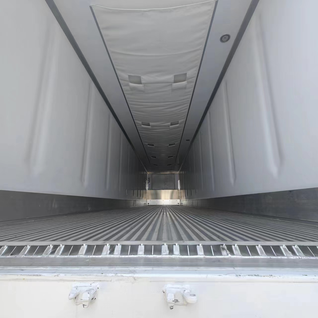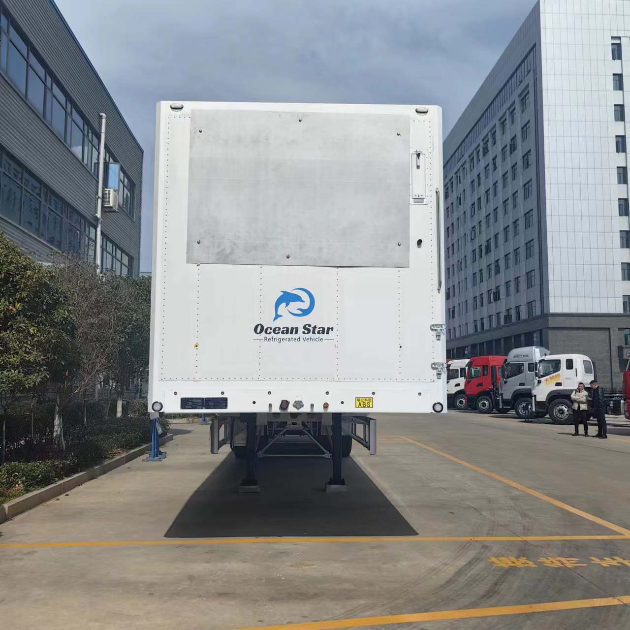 半掛出口冷藏車選用的是富華品牌的ABS,行走部分牽引銷可選裝90和50,成山12R22.5輪胎,采用的是輕量化鋼圈,帶緊急制動閥,配備鋁合金鋼圈,貨箱尺寸:12970*2440*2450mm,該車箱體采用的是外全鋁蒙皮,內熱縮板,帶聚氨酯發泡工藝,左右側板8公分厚,底板12公分厚,底板加厚通風槽,廂體內部頂板加裝通風布,前后通風器,四個頂燈,冷機護板,單側門,左右兩側30公分護板(圍裙),兩個排水孔,后門上車爬梯,大包邊,后門雙鎖桿,不銹鋼門框其他按半掛標準。