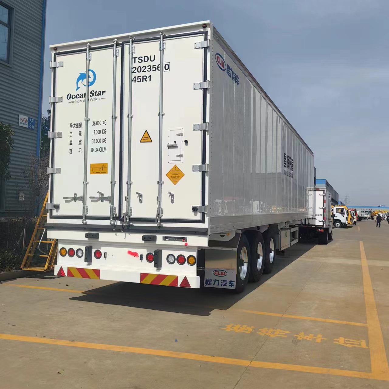 雙胎出口半掛冷藏車選用的是美國開利X4-7300大鳳凰雙溫機組,裝載噸位可達30噸,溫度保鮮時間長,制冷效果好,讓您用車更貼近實際需求!