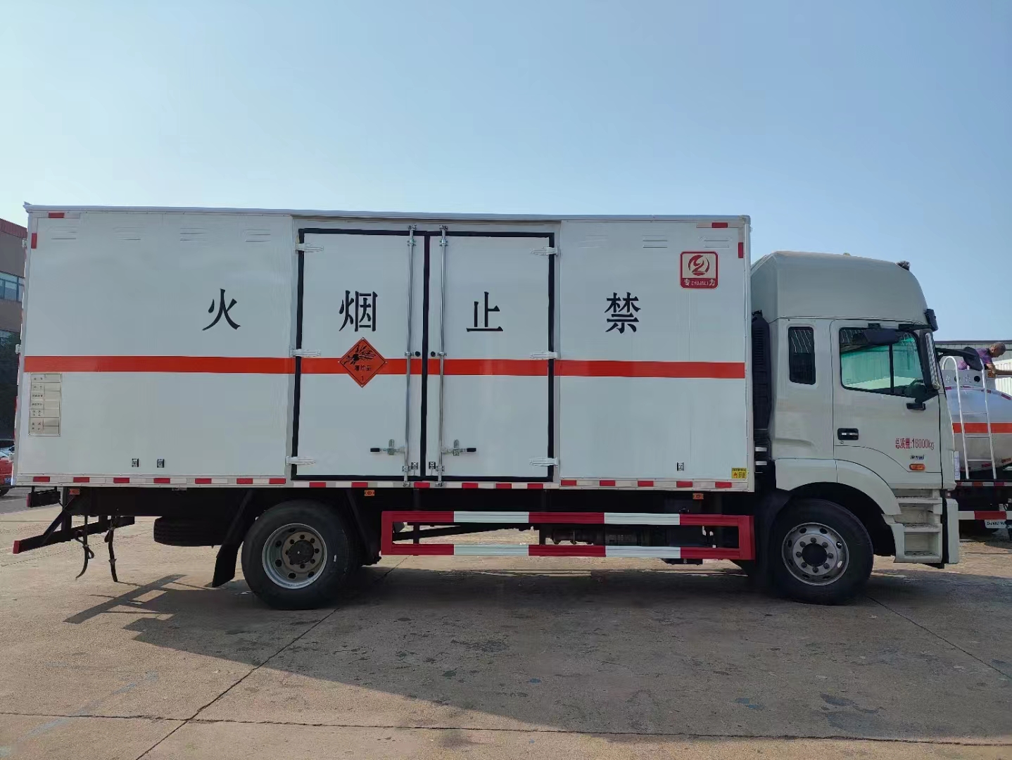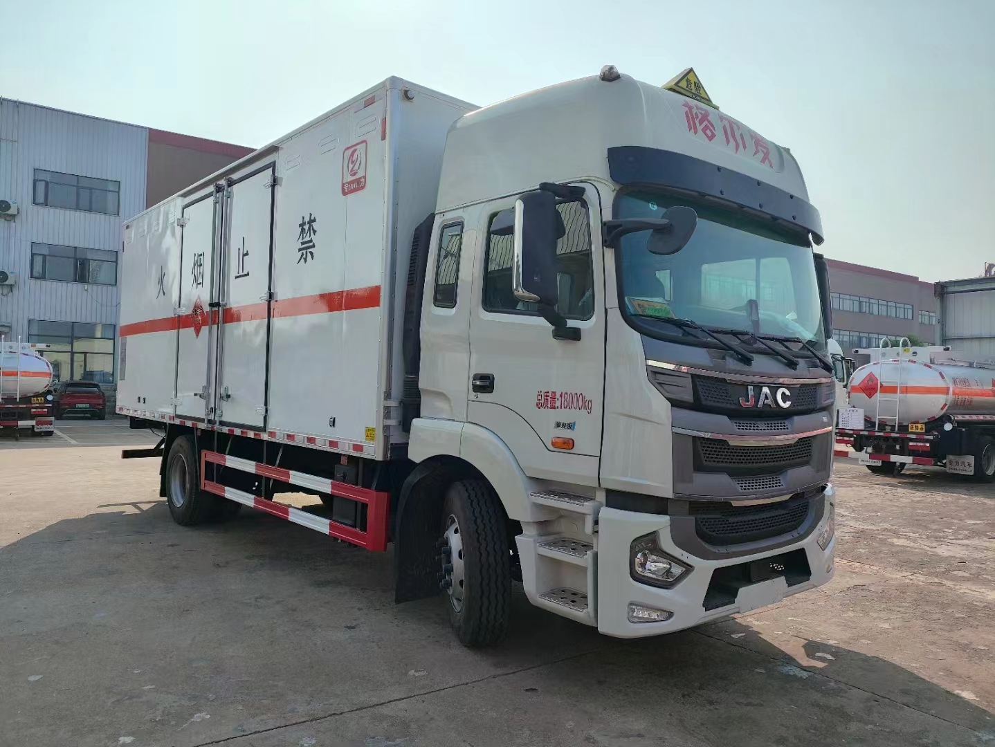江淮格爾發(fā)6米8國六化學(xué)物品運(yùn)輸車外板采用冷軋鋼板一次性沖壓成型的百葉窗,內(nèi)飾為導(dǎo)電性能良好的鋁板有透氣孔,內(nèi)襯矩形管骨架牢靠穩(wěn)定,骨架內(nèi)部填充為透氣防潮阻燃的擠塑板。廂體外部四周鋁合金型材包邊,底板和車廂前下部鋪橡膠皮,后門雙開,右側(cè)選裝側(cè)開門,內(nèi)部安裝固定貨物的臥環(huán)或腰欄,安裝煙霧報(bào)警器、防盜感應(yīng)器。車身附件靜電接地帶、滅火器、防火罩、危險(xiǎn)品三角燈、橙色反光帶、CCC反射器、菱形標(biāo)志牌、危險(xiǎn)品牌、安全告示齊全。