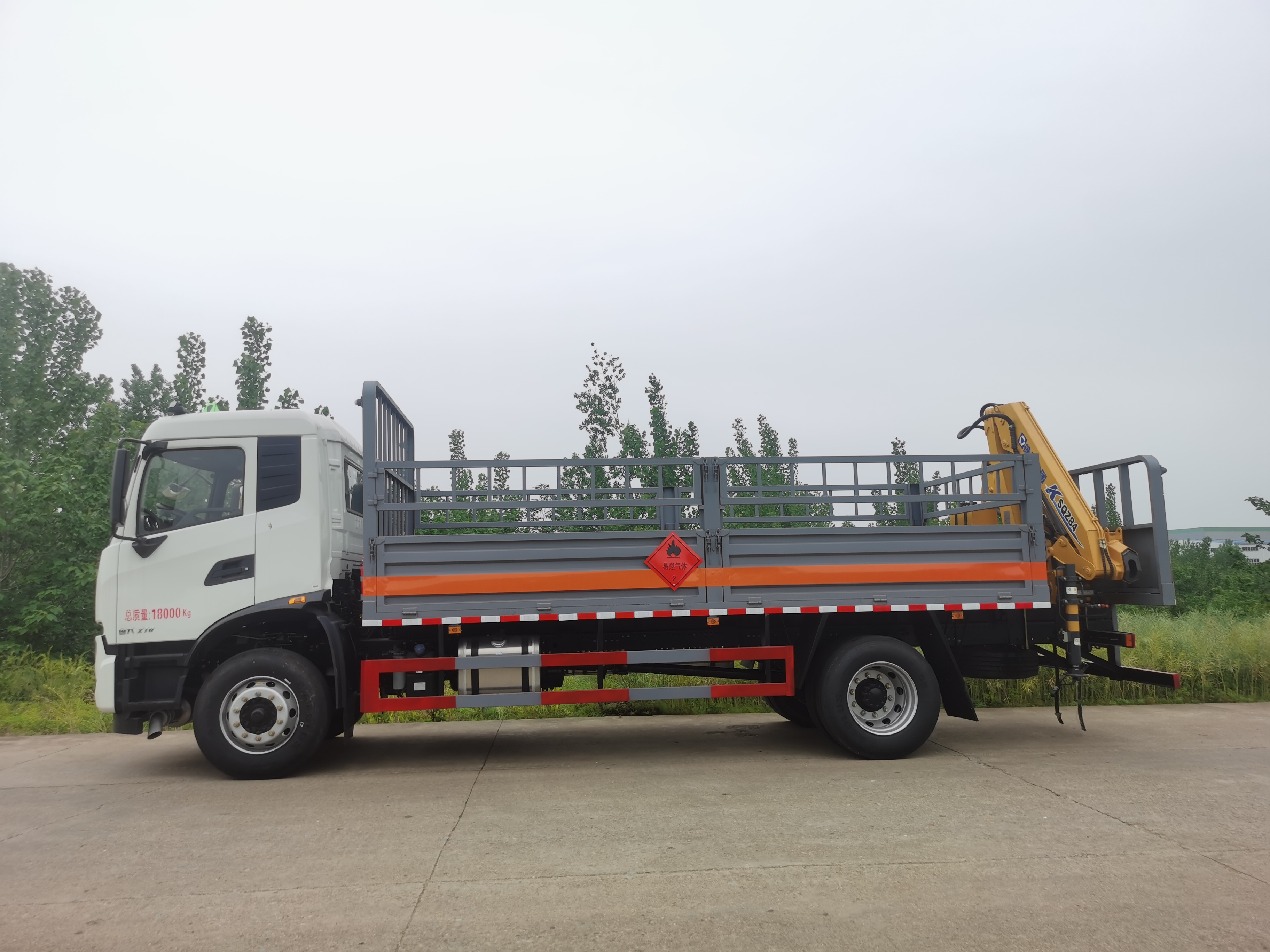 東風天錦單橋10噸國六后置吊機氣瓶運輸車外形尺寸:8710/9000*2500/2550*3120/3200,廂體尺寸:5200/5300/5500/5600/5700/6750*2400/2450*600,帶4噸徐工拆臂式吊機,三節臂,工作高度9米,工作半徑7.3米。吊臂工作半徑7.3米時起吊900公斤,吊臂工作半徑5.8米時起吊1200公斤,吊臂工作半徑4.15米時起吊1800公斤,吊臂工作半徑2.1米時起吊4噸。底部鋪靜電膠皮。帶危險品三角燈防火罩。有環保,有燃油,不超重。帶三角燈,滅火器,危險品標識,反光標等隨車工具。