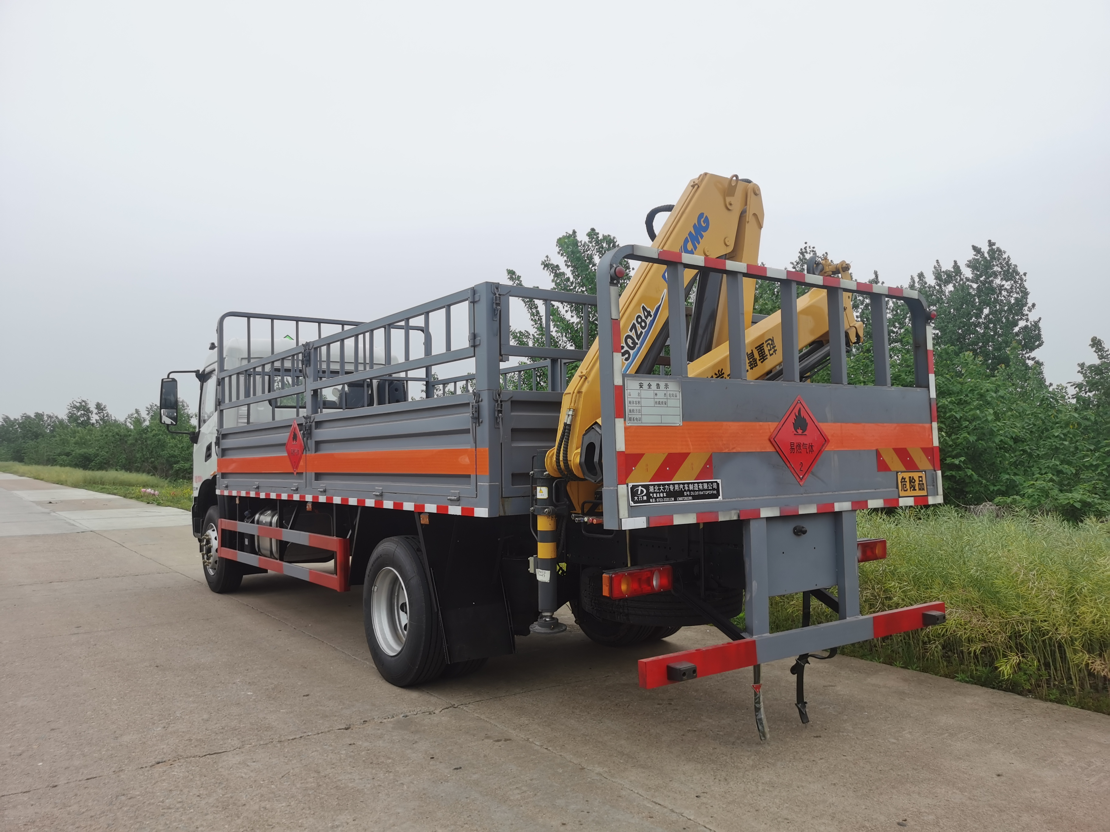 東風天錦單橋10噸國六后置吊機氣瓶運輸車裝載噸位大,應用范圍廣靈活性強,可應用于多種路況,是目前市場上不可多得的一款車輛,重點是符合危險品車公告和燃油,讓您安心用車,少去后顧之憂。