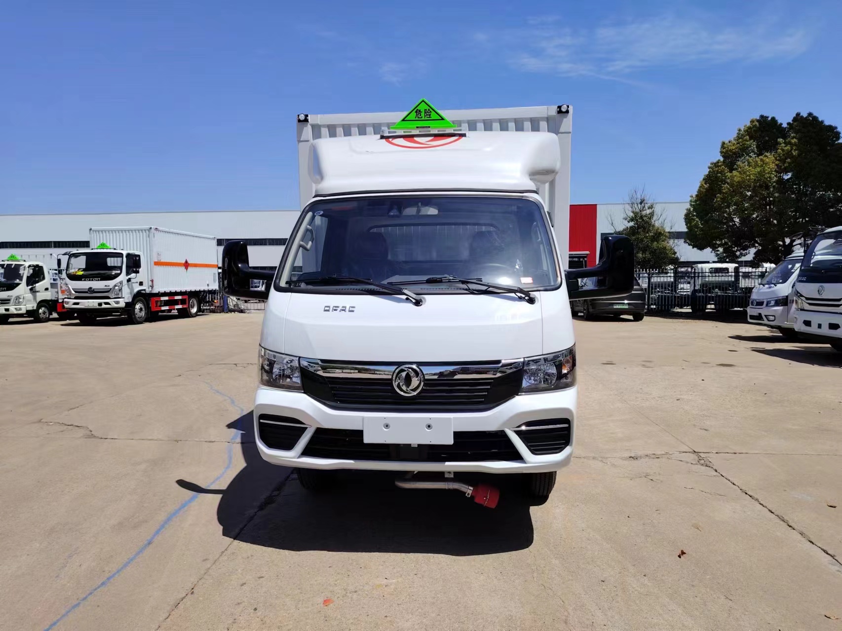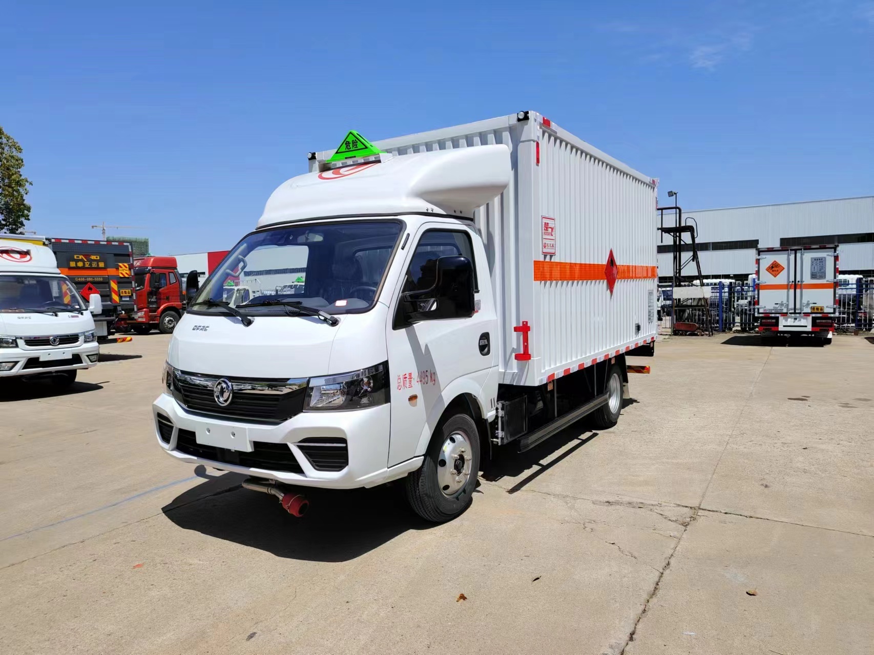 東風途逸3米9柴油危爆車可選復合板箱體和瓦楞板箱體兩種,兩種箱體具體介紹如下:1)復合箱體:廂體采用可產生靜電屏蔽效應的冷扎鋼板,內飾鋁板,中間附以阻燃防潮材料,前置防撞防靜電膠皮。箱體底部鋪防靜電膠皮,后門為對開門,廂體右側開單側門。箱內安裝固定運載物的臥環(huán),門上安裝防盜報警器,箱體頂部防燃煙霧報警器。箱體外側安裝示廓燈及滅火器支架,配兩個滅火器,靜電帶,廂體顏色為白色,供方嚴格按照公告尺寸制作。