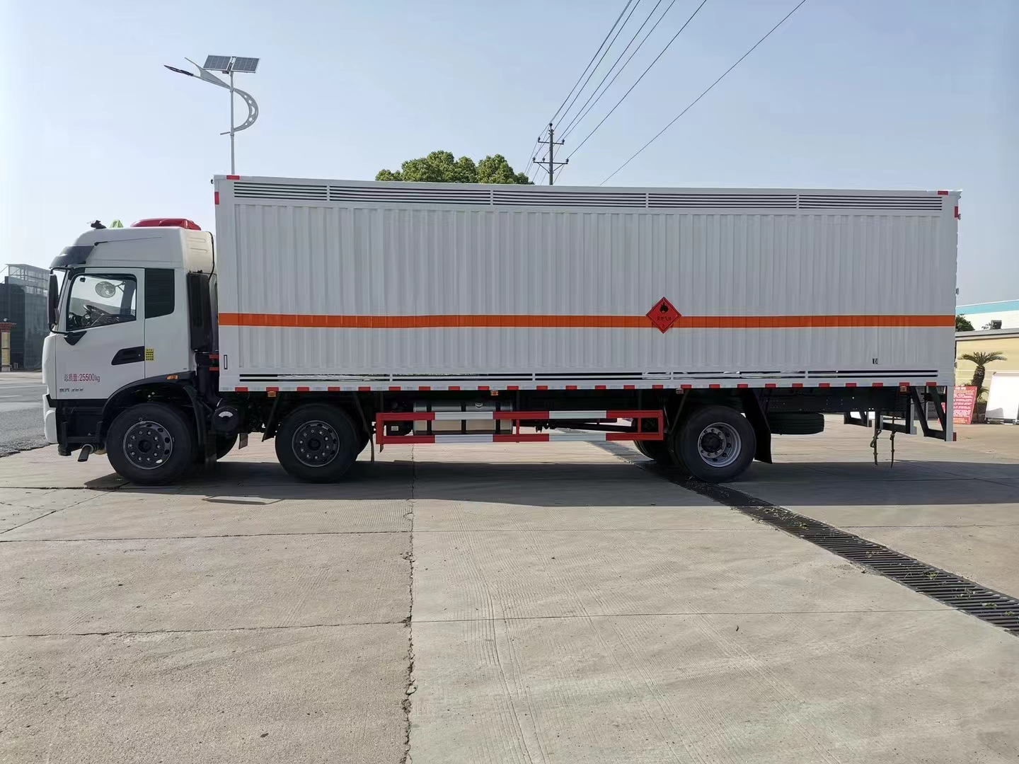 東風天錦三軸國六瓦楞板雜項危險品車擋泥板采用的是沖壓件螺栓連接,美觀結實大氣通用程度高,嚴格把控產品的一致性。該車裝載噸位可達15噸,尾部可加裝液壓尾板整車不超重。也可以根據運輸要求不一樣,選用復合板工藝,多種可選,讓您用車更無憂!