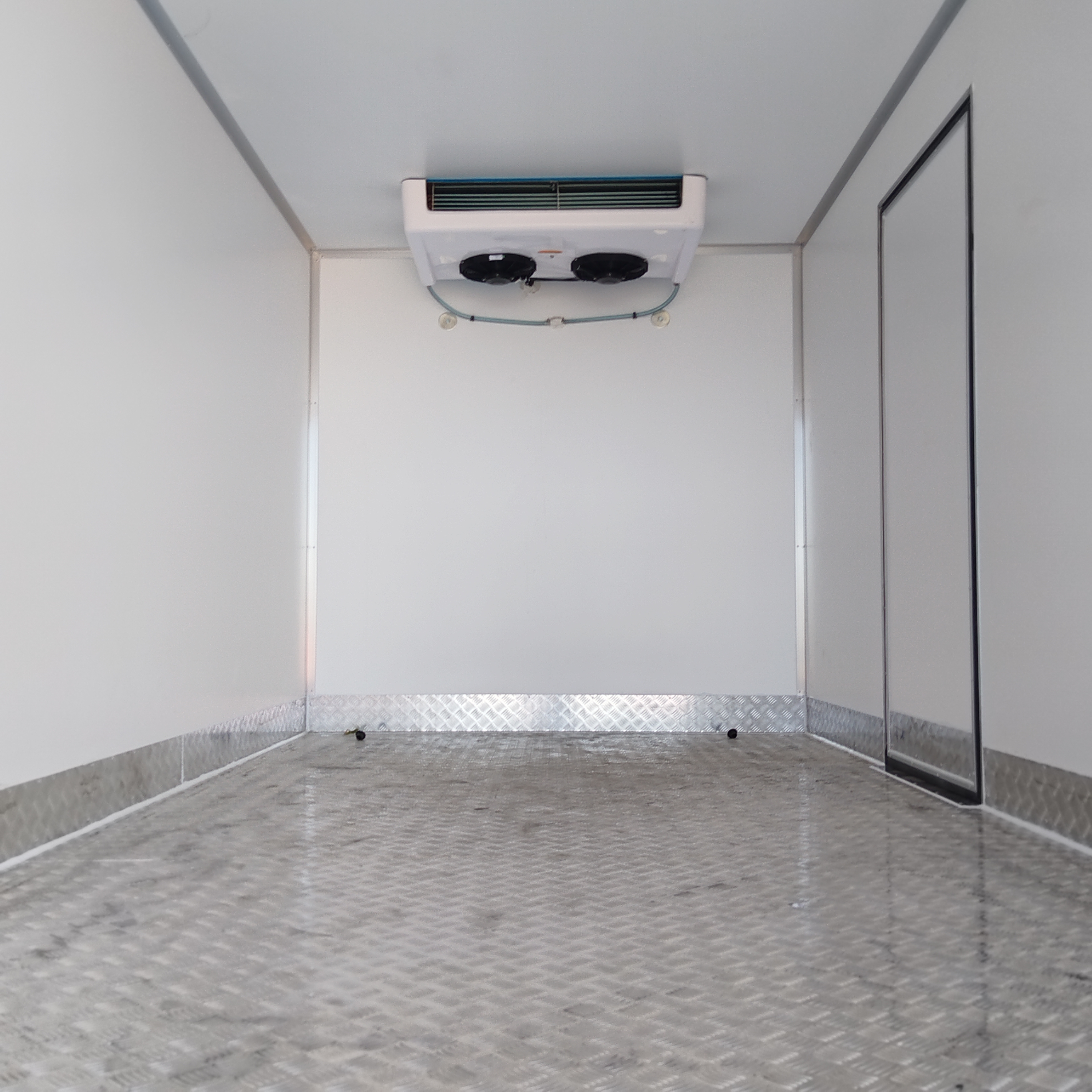福田奧鈴速運(yùn)Pro國六冷藏車廂體材質(zhì)采用內(nèi)外玻璃鋼,中間8CM高級(jí)保溫材料填充,箱體后雙開門,廂體右側(cè)單開側(cè)門,前部?jī)蓚(gè)排水孔,底部采用鋁花紋底板,門邊條采用迷宮式橡膠密封條,鋁合金型材包邊,不銹鋼包角,不銹鋼門鎖,不銹鋼門框及合頁,廂體內(nèi)節(jié)能LED照明燈,箱體內(nèi)直角包邊,其余標(biāo)配。