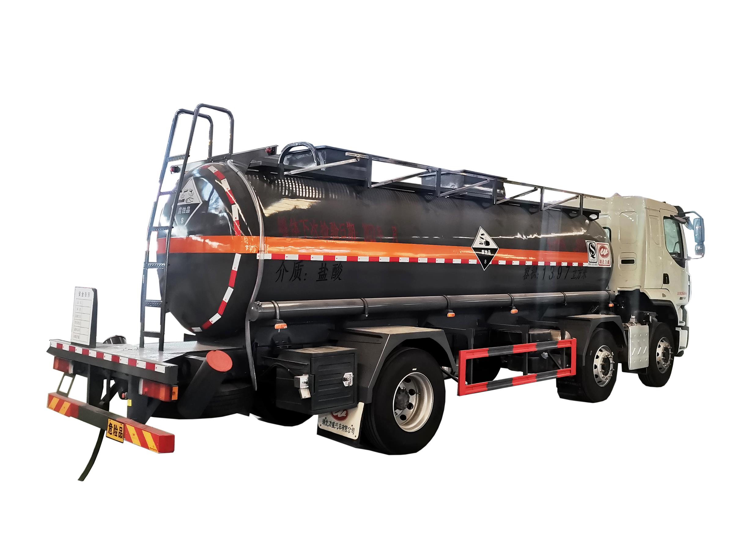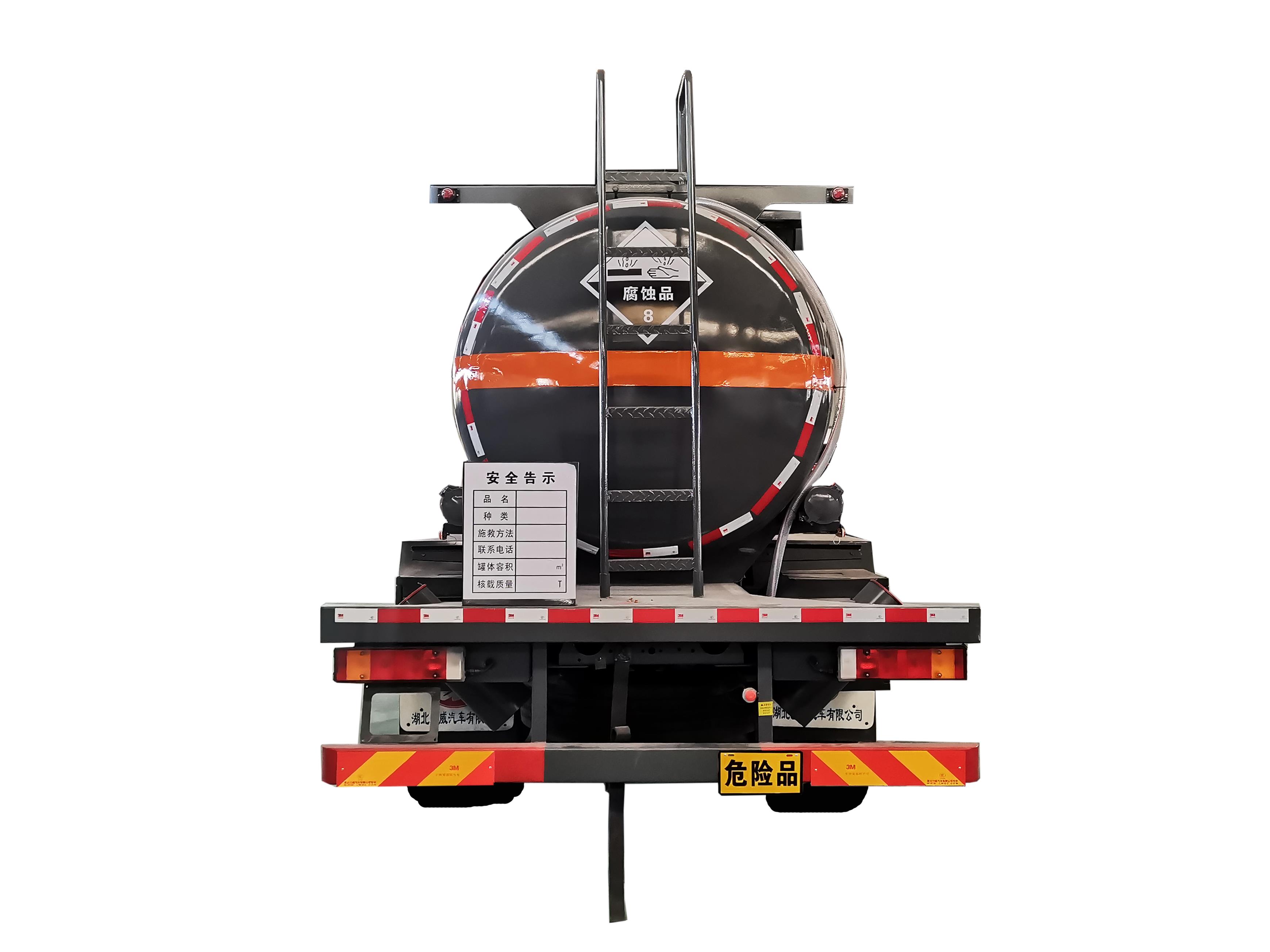 柳汽乘龍國六8類腐蝕品罐式;嚬摅w尺寸:(長×直徑)(mm):7200×1690,額定質(zhì)量:15770kg,采用的是外罐體材質(zhì)為Q235B型碳鋼板材,筒體4.0mm厚,封頭4.75mm厚,蝶形封頭,罐體通倉,罐體內(nèi)襯聚乙稀塑厚度16mm,副梁前高后低,兩個全塑罐口,罐口周圍帶方形保護箱,內(nèi)做襯塑防腐,一套不銹鋼安全閥。罐體尾底部安裝一套DN100型不銹鋼襯四氟海底閥(海底閥帶聲光報警裝置),罐體尾部左右大梁下各一個自流口,用DN80型襯氟球閥控制帶外購全塑保護箱。罐體頂部左、右側(cè)帶不銹鋼升降護欄,玻璃鋼走道。后爬梯一副,兩個8Kg滅火器,兩根耐酸堿卸料軟管,其余按廠家標配生產(chǎn)制作。油漆:深灰防腐漆,貼反光條,貼反光帶,安全告示。