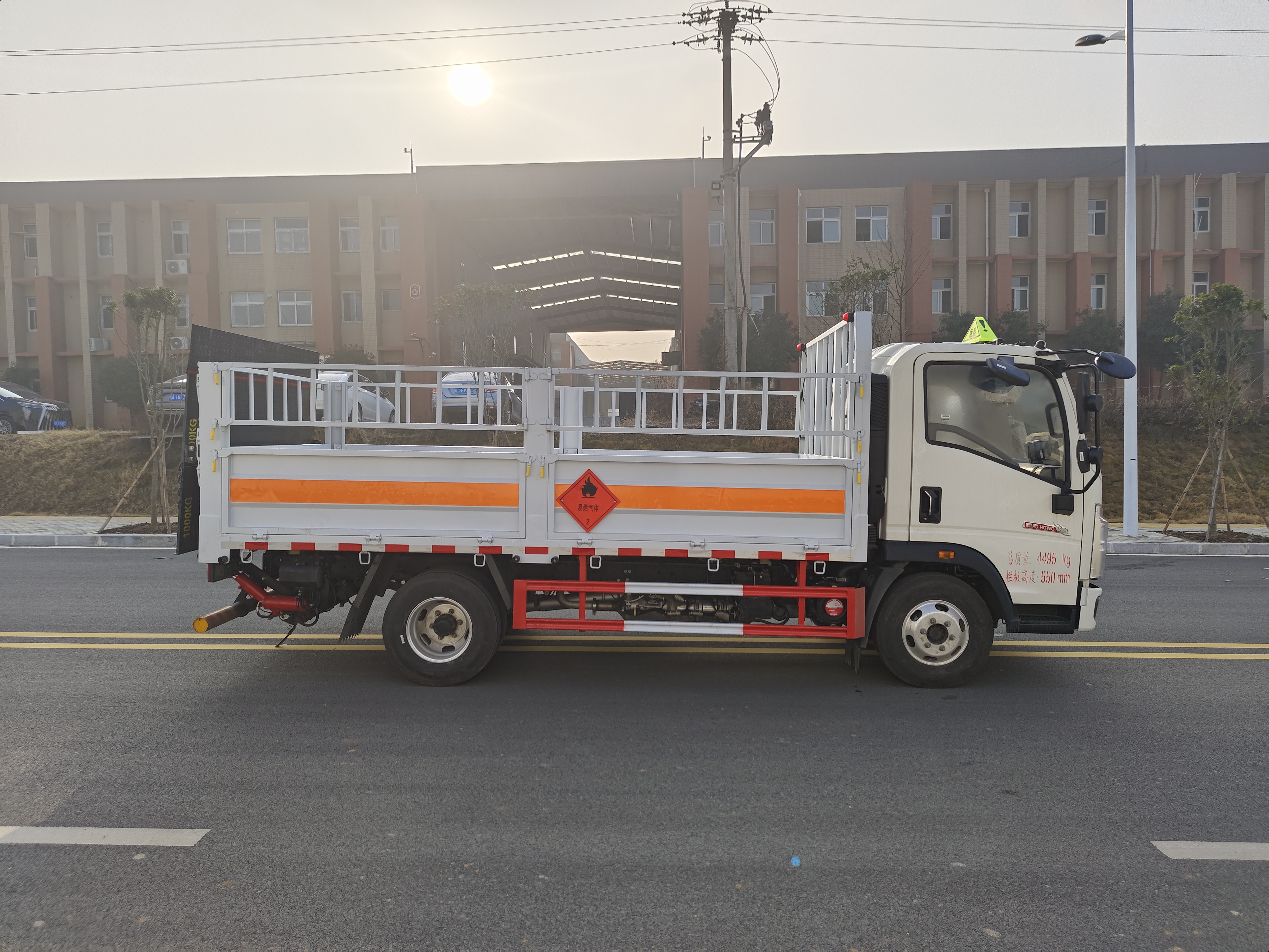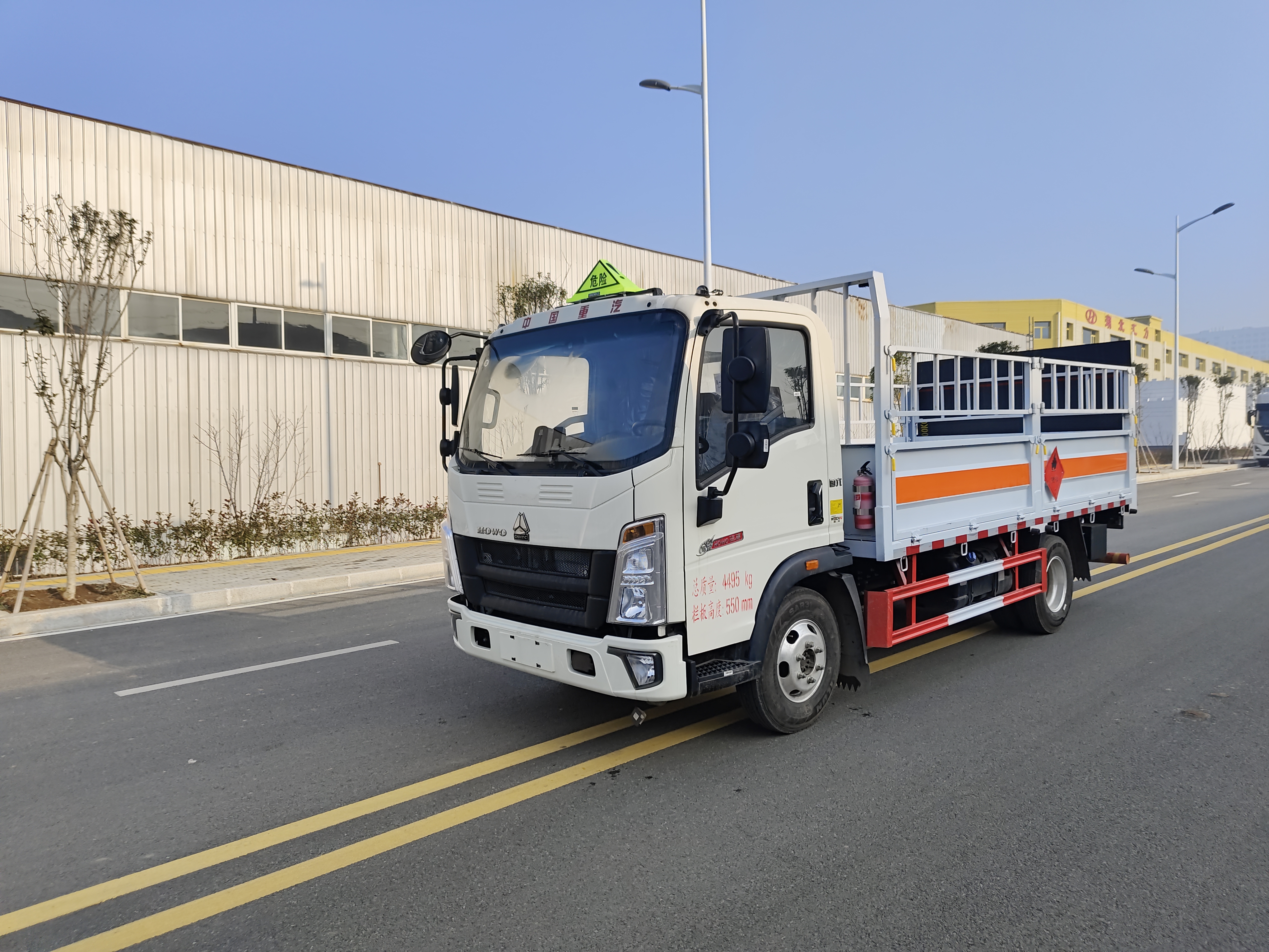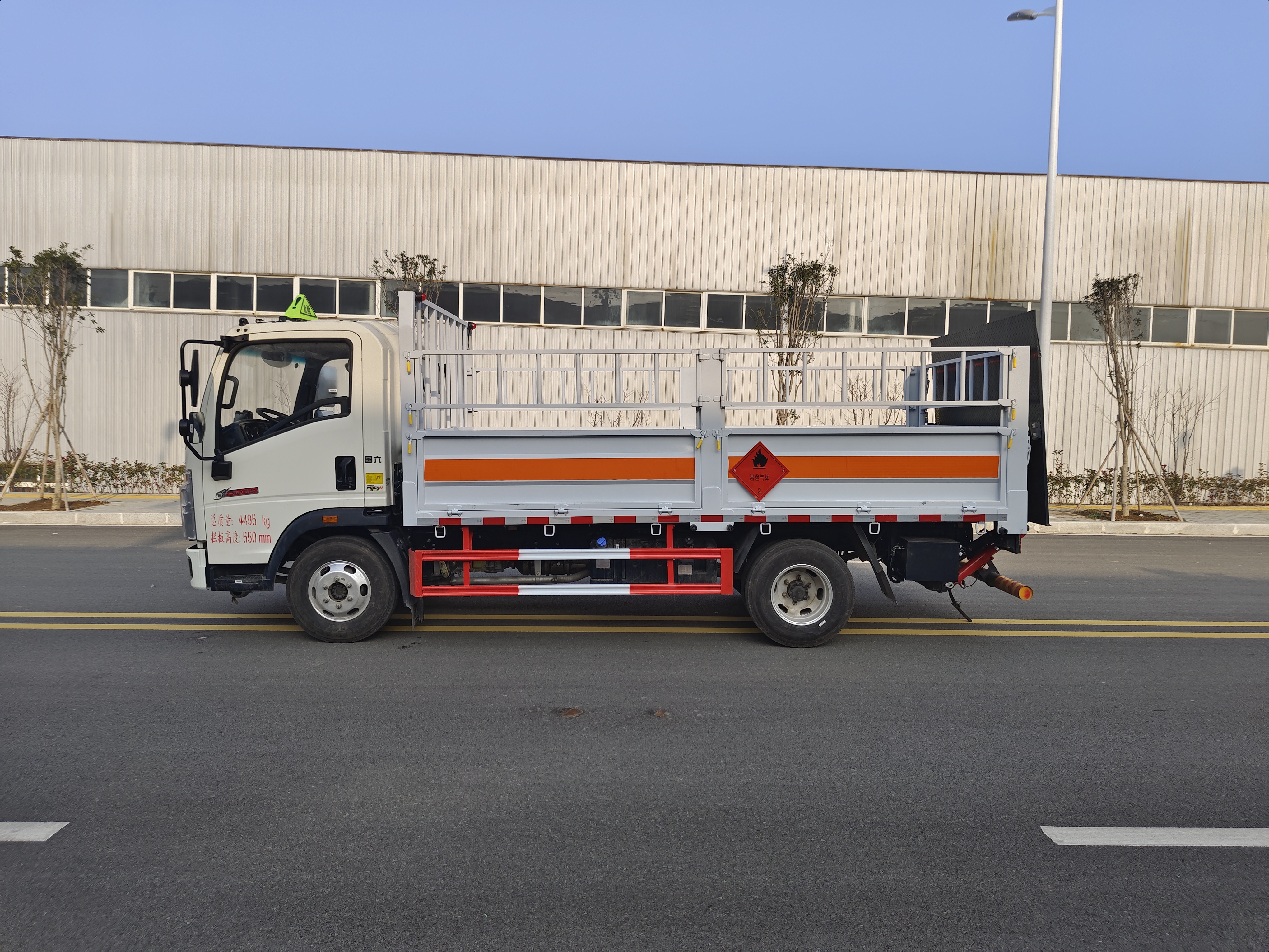 重汽豪沃國六氣瓶車箱體尺寸:4150*2100*550mm,箱體選用的是龍門架圓管結構,廂體為瓦楞板。生產工藝采用花紋底板,上鋪靜電膠皮,高550mm的墻板,高欄結構。配備隨車工具,其他按標配制作。嚴格按照公告生產。額載噸位1.8噸,可選裝1噸液壓尾板,整車不超重。