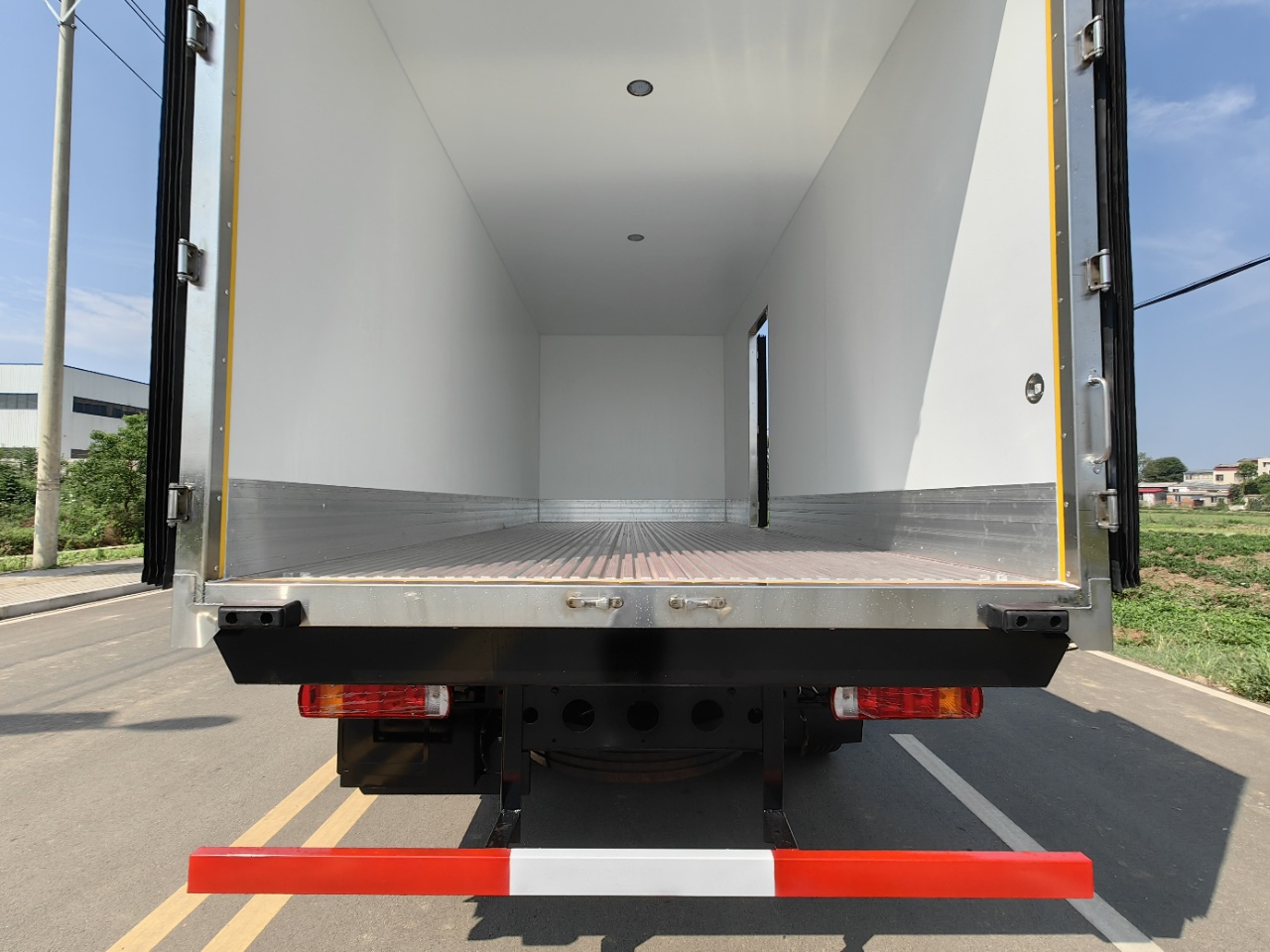 解放J6L國六300馬力6.8米冷藏車箱體采用內(nèi)外玻璃鋼板,中間8cm厚高密度保溫板,底板采用下沉式滿焊通風槽,箱內(nèi)前板+側(cè)板30cm高鋁型材踢腳線,箱體外部鋁型材包邊,不銹鋼門框、門鎖件,5層結(jié)構(gòu)密封條,單開側(cè)門,大工具箱,安裝國產(chǎn)S1100制冷機組,帶冷機檢修爬梯,后雙開門