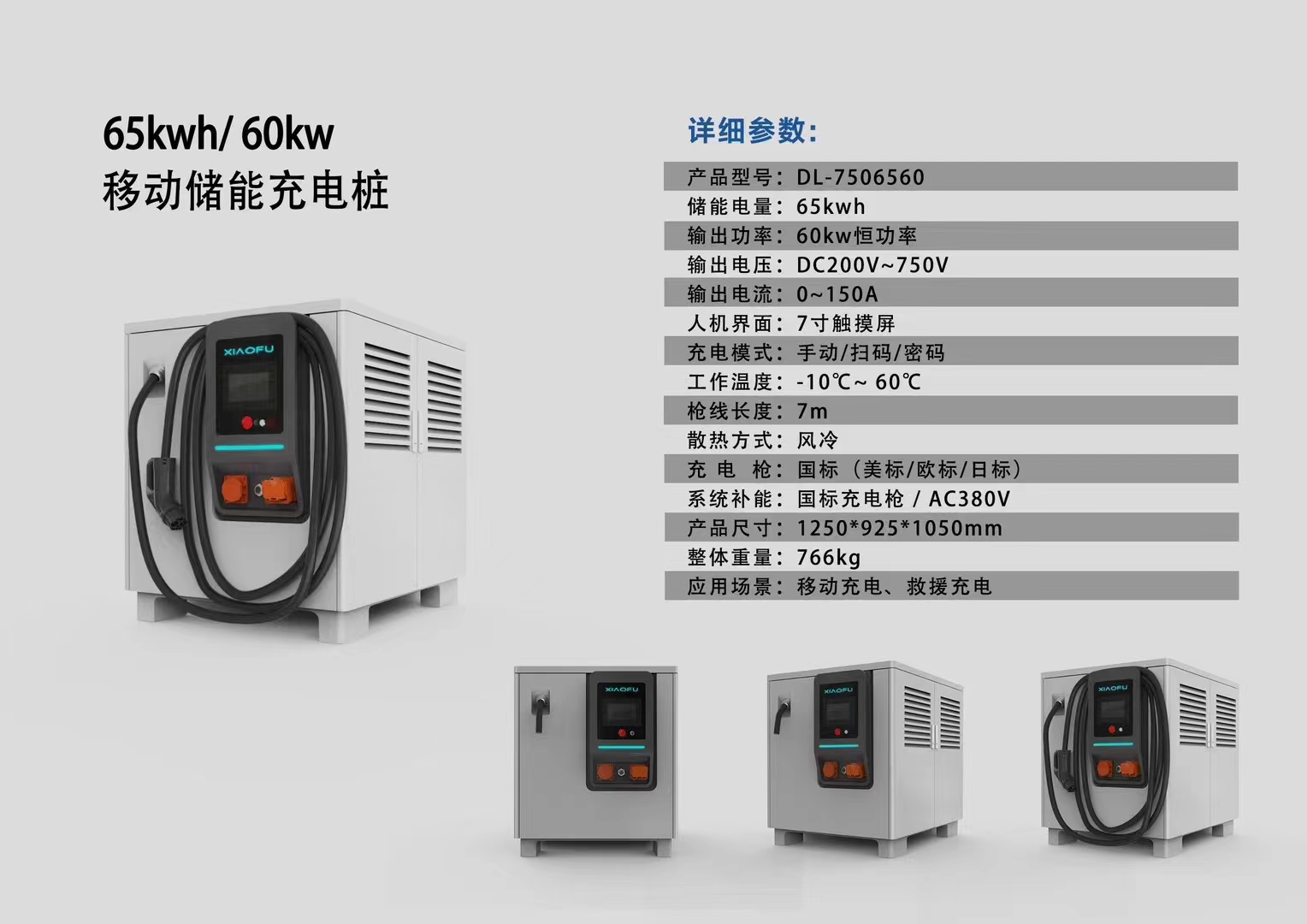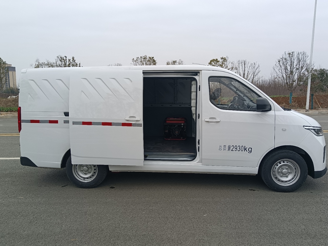 五菱揚光國六純電動移動充電車整車尺寸:4985*1800*1975mm,3050mm軸距,定制的是電機峰值功率60(kW),電機峰值扭矩220(N·m),195/70R15LT 12PR輪胎,自動擋,后置后驅,最高車速(km/h):90,駕駛室準乘人數(人):2 ,電芯廠家:蜂巢,電池總成廠家:華霆,電池技術:液冷電池技術,電池電量41.9(kWh),電池類型:磷酸鐵鋰,續航里程300(km),直流快充和交流慢充(6.6kw),麥弗遜式獨立前懸架,縱置5片鋼板彈簧后懸架,電動助力轉向,前盤后鼓,270度對開尾門,ABS,前門電動車窗,遙控鑰匙,空調,收放機+AUXIN,USB接口 4A ,后倒車雷達。