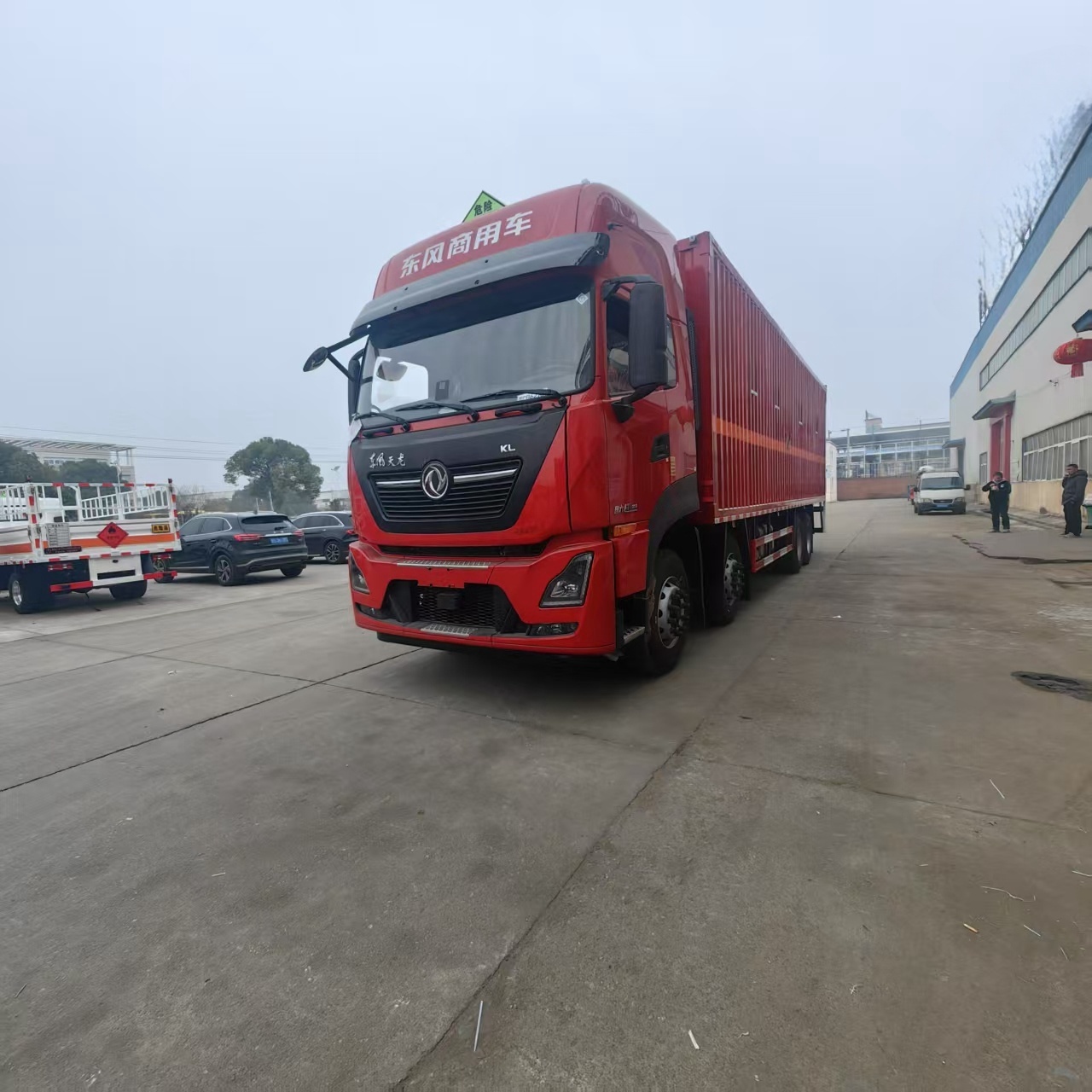 外觀帥氣、性能強勁、內飾舒適、安全可靠。東風天龍前四后八紅色危險品車貨箱尺寸可多選,額載噸位可達20噸,尾部可加裝液壓尾板,整車不超重,讓您用車更無憂!
