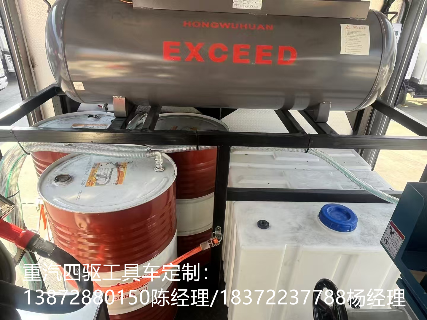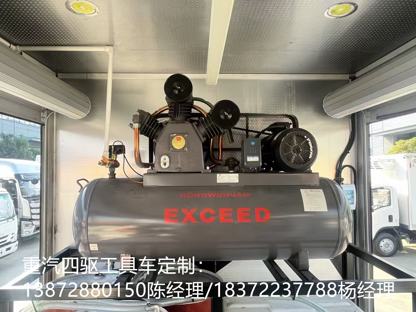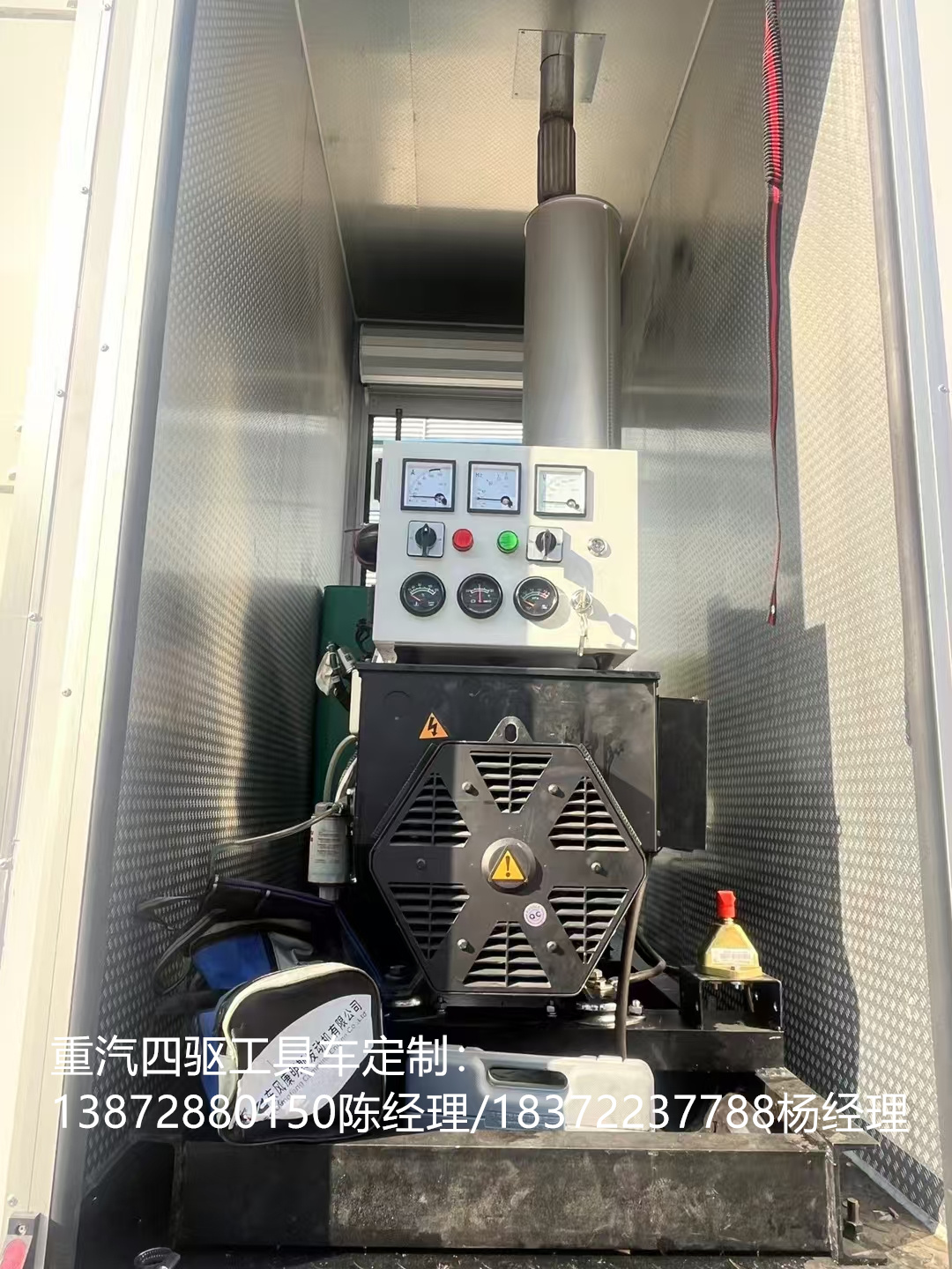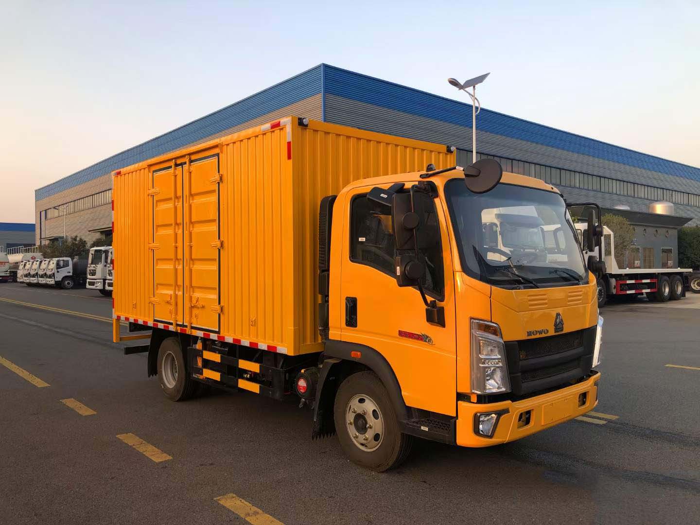 重汽豪沃國六檢修車選用的是濰柴130馬力國六發(fā)動機(jī),原廠雙層大梁,萬里揚6檔變速箱,軸距3280mm,7.00R16原廠鋼絲胎,原廠abs,帶方向助力,離合助力器,氣剎制動,帶冷暖空調(diào)。根據(jù)使用需求,箱體定制的是三套液壓動力取力快速接口,帶控制面板,壓力表,遠(yuǎn)程油門控制,電控開關(guān),方便快捷。2套4寸柱塞式渣漿泵,200立方/小時,揚程≥25米。匹配的是液壓驅(qū)動空壓機(jī)(型號1.05/12.5,300升)。3500W逆變器,帶電控箱,220V電力輸出。起重可承載800公斤12V電控吊機(jī),2個固定照明燈,一個可移動式探照燈。2個雙層可移動工具架。20米液壓管2套,20米排水管2套。