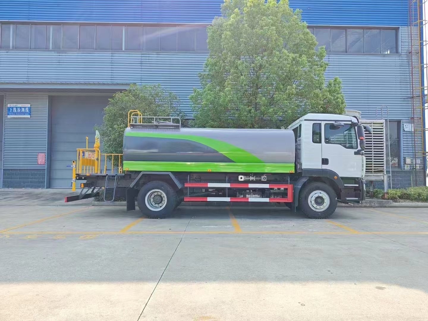 汕德卡12方灑水車選用的是環(huán)衛(wèi)車專用底盤,底盤型號:ZZ5186XXYK501GF1,軸距:4500mm。選用的是汕德卡G5W基礎款駕駛室;匹配的是多功能方向盤、電動電加熱后視鏡、主氣囊+副簡易型座椅、 WP4.6NQ220E61發(fā)動機。定制的是HW95508STC變速箱+HW45ZC法蘭式取力器;1094自調(diào)臂前軸(鼓);MCJ09BG自調(diào)臂單后橋(鼓);速比5.29;雙層車架(7+4/250);前后超強版多片簧(11/9+8);國產(chǎn)方向機;標準版排氣系統(tǒng);ABS(4S/4M);高位保險杠(全金屬);普通車輪;295/80R22.5輪胎(混合花紋/18PR);手電一體電動舉升;200L鋁合金油箱;中國重汽智能通B版匹配的是大功率水泵,具有自吸自排的功能,垂直吸程大于6米。帶前沖后灑、尾部帶工作平臺,可選裝蛇形霧炮,帶可調(diào)節(jié)功能。